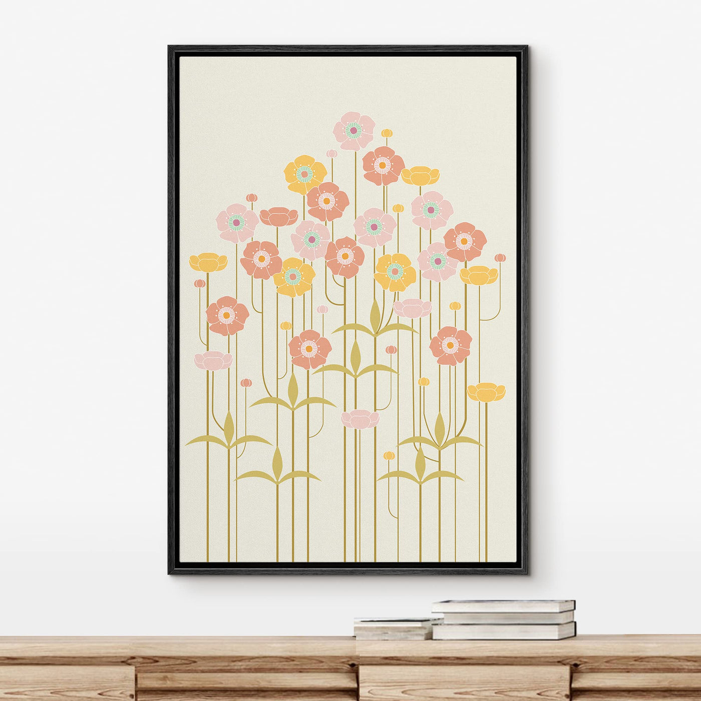 NWT Framed Canvas Print Wall Art A Bouquet of Pink Orange and Yellow Daisies Floral Plants Illustrations Modern Art Chic Group Colorful Ultra for Living Room Bedroom Office - 24''x36'' Black