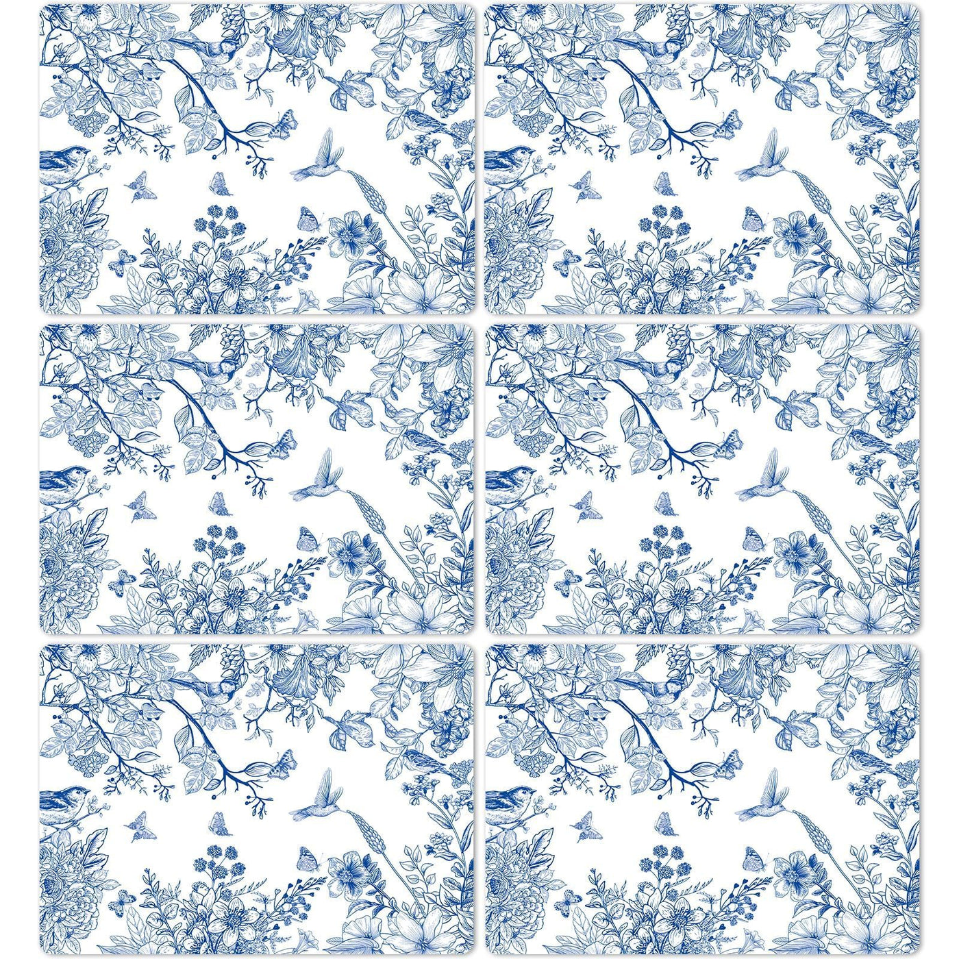 Obusatt Blue Floral Placemats Set Of 6 Flower Bird Plastic Table Mats Seasonal Spring Placemats Chinoiserie Table Mats Rustic Vi