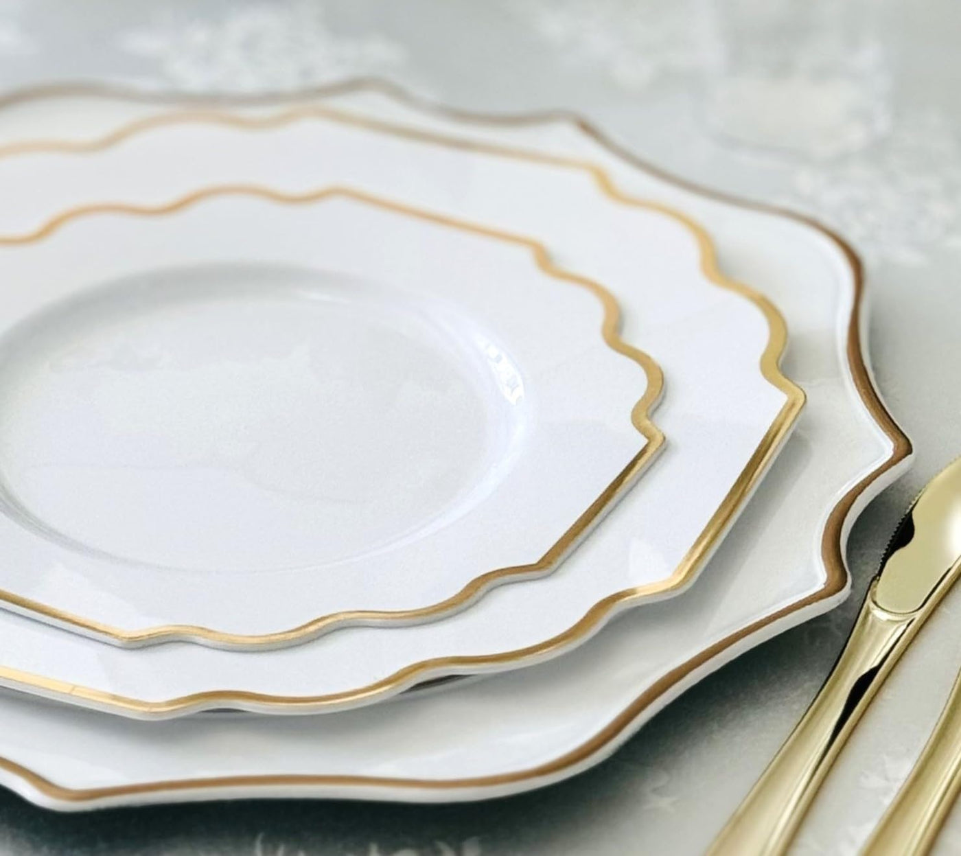 - Q: What is the design of the plates and cutlery? A: The design features an elegant imperial white color with a gold rim, adding a touch of sophistication to your events.