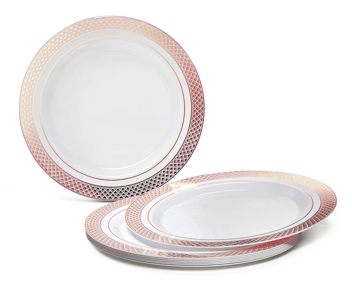 ' OCCASIONS '' 50 Plates Pack (25 Guests) - Heavyweight Wedding Party Disposable Plastic Plate Set - 25 x 10.5'' Dinner + 25 x 7.5'' Salad/dessert plates (Celebration White/Rose Gold)