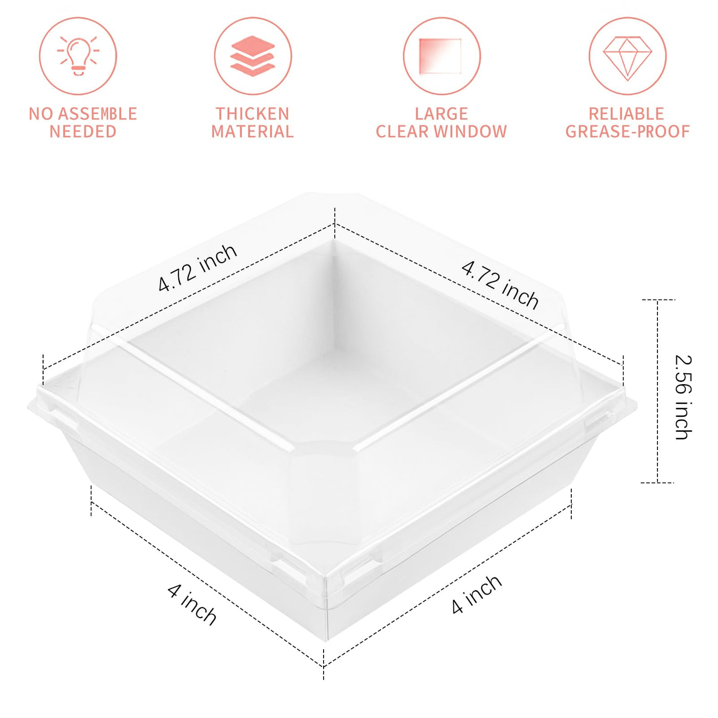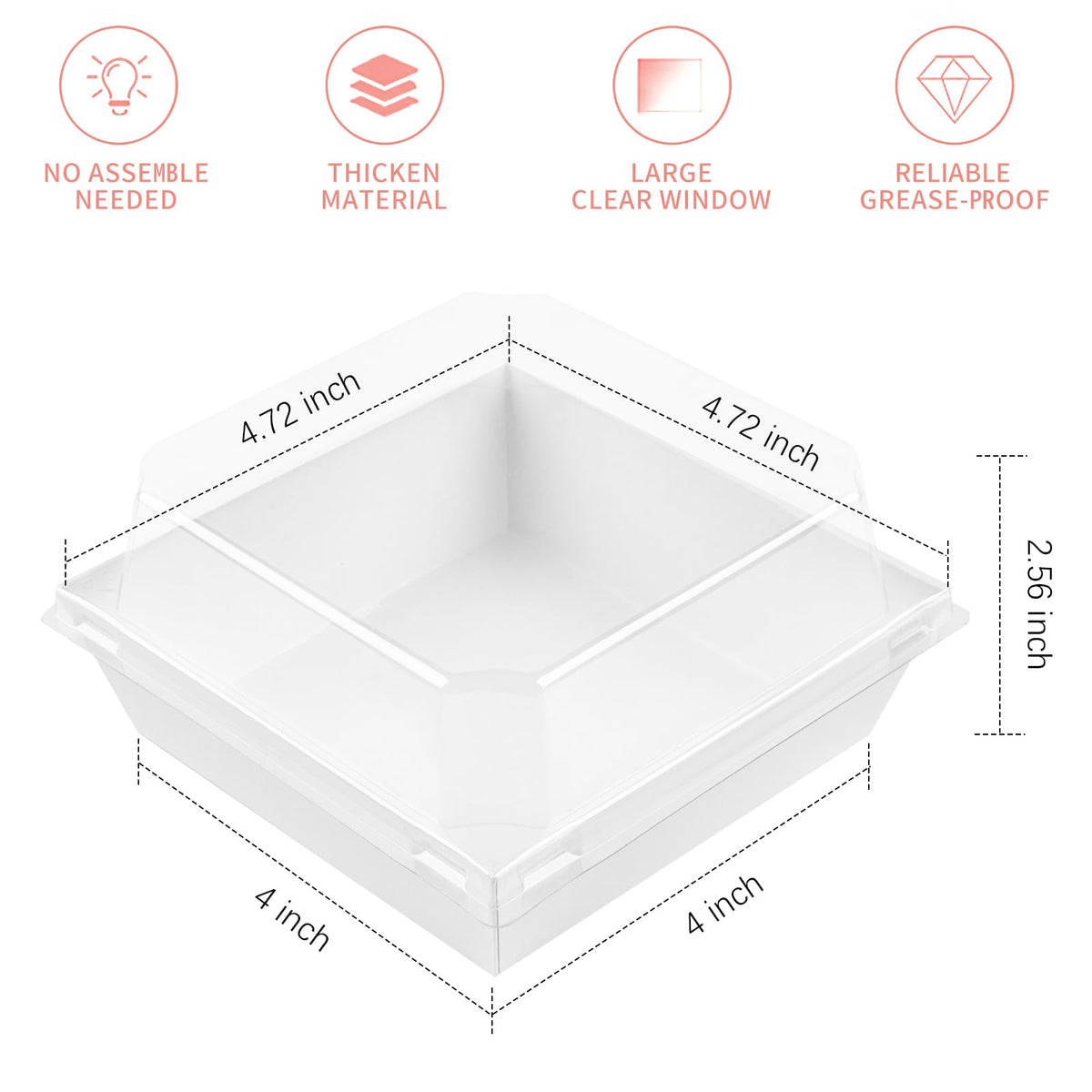 Ocmoiy 50 Pack Small Charcuterie Boxes With Clear Lids 4X4 Inch, To Go Disposable Paper Food Containers Bakery Treat Boxes For D