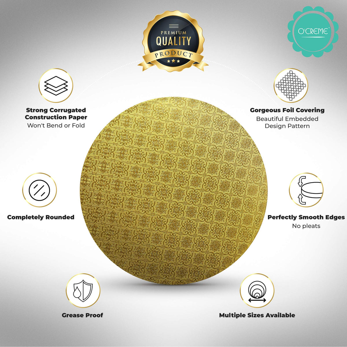 Ocreme Cake Board, Gold Foil Round Cake Circles With Gorgeous Design, Sturdy & Durable 1/2 Thick Cake Drums, Round Cake Board