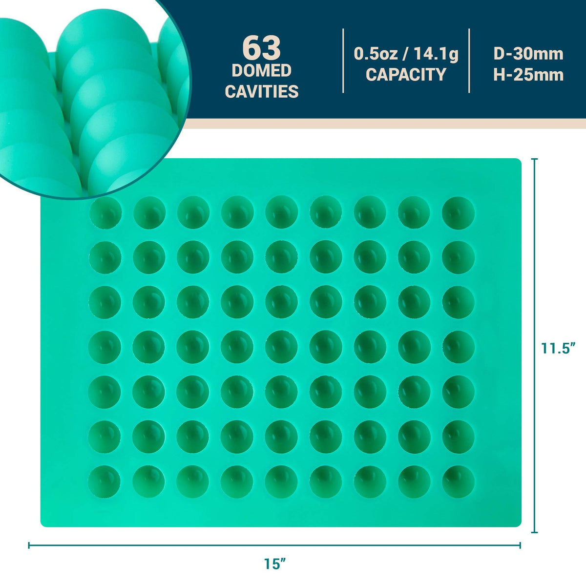 - Q: How many cavities does the mold have? A: The mold features 63 cavities, each with a volume of 0.5 ounces.