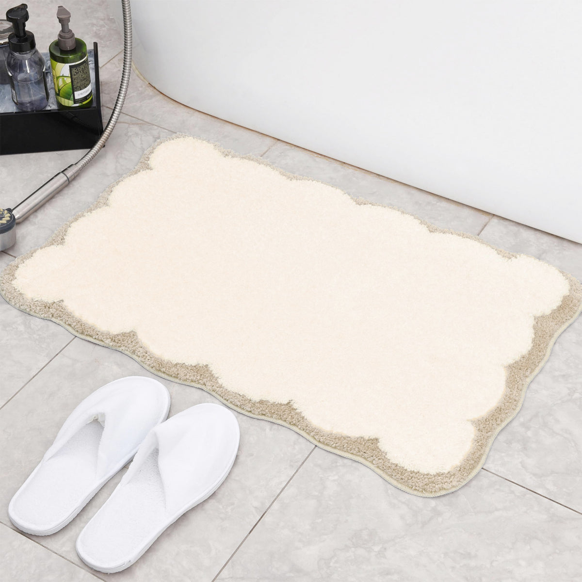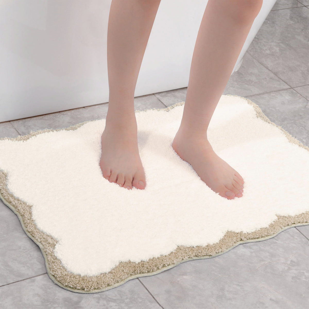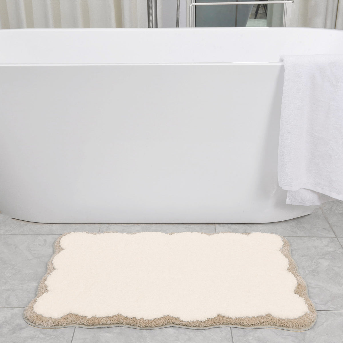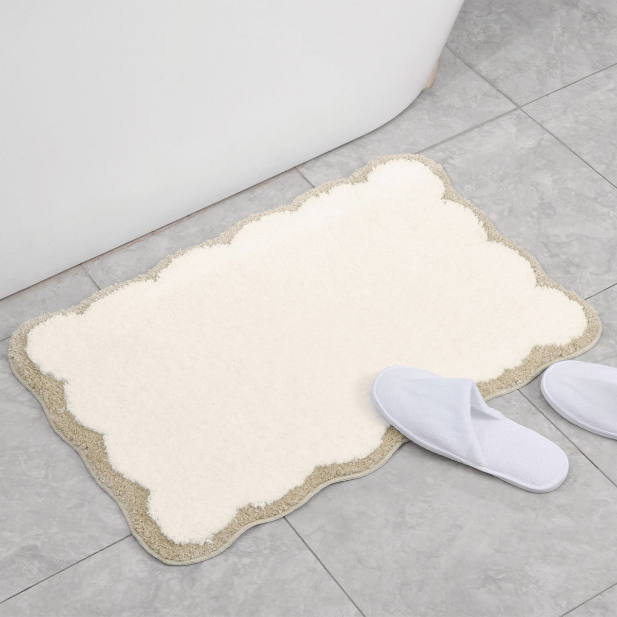 Ohocut Luxury Microfiber Bathroom Rugs, Beige Sand Scalloped Bath Rug Boho Farmhouse Cute Aesthetic Preppy Bath Mat For Bathroom