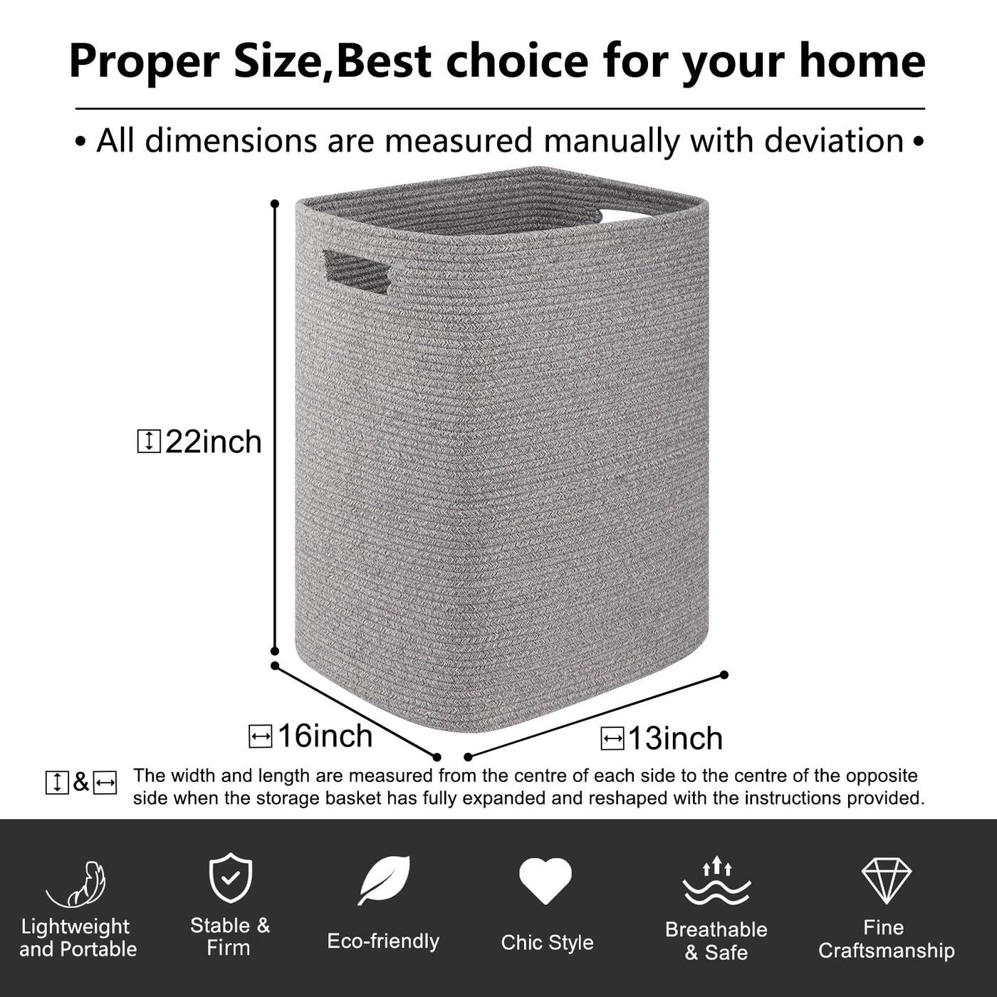 Oiahomy Laundry Hamper, Laundry Basket,Rectangle Cotton Storage Basket With Handles, Large Blanket Basket For Living Room, Woven
