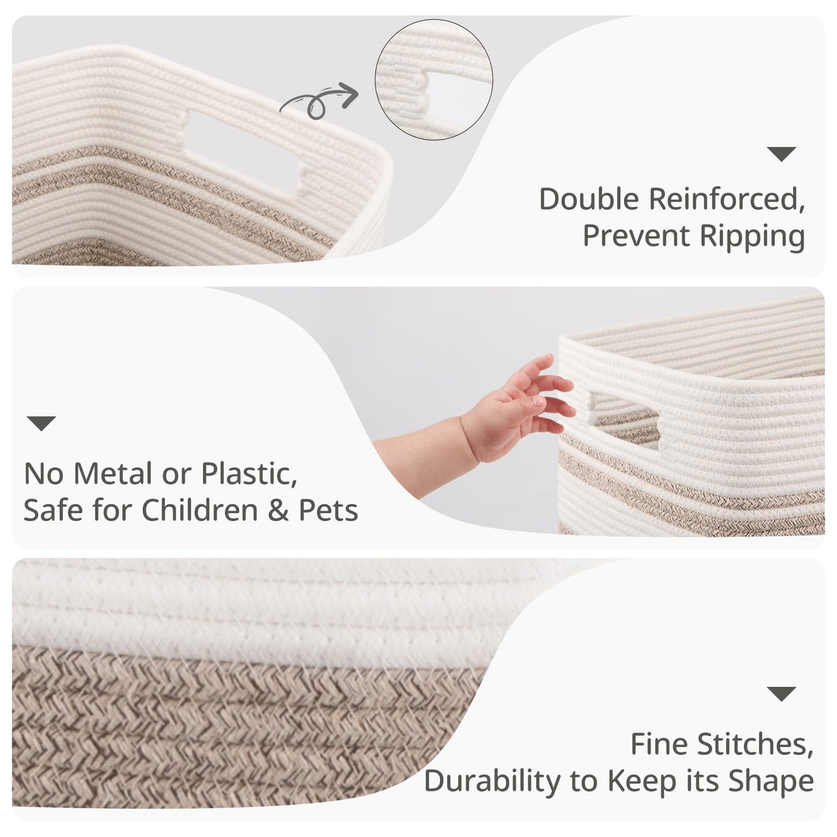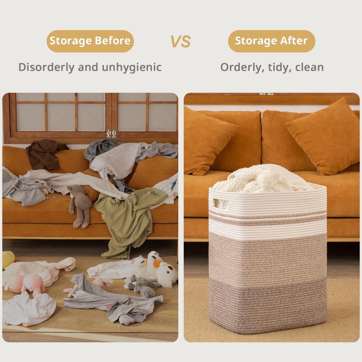 Oiahomy Rectangle Laundry Basket, Large Laundry Hamper With Handles, Cotton Blanket Basket For Living Room, Woven Decorative Sto