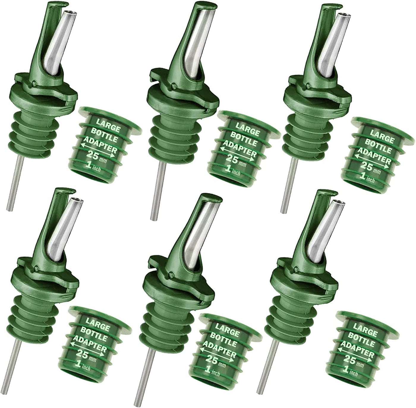 Olive Oil Spout for Olive Oil Dispenser - UK Patented Oil Pourer - Mid Flow Shut Off for Accurate Measurement - One Handed Open & Close Cap Keeps Oil Fresh and Prevents Oxidization - Green 6 Pack