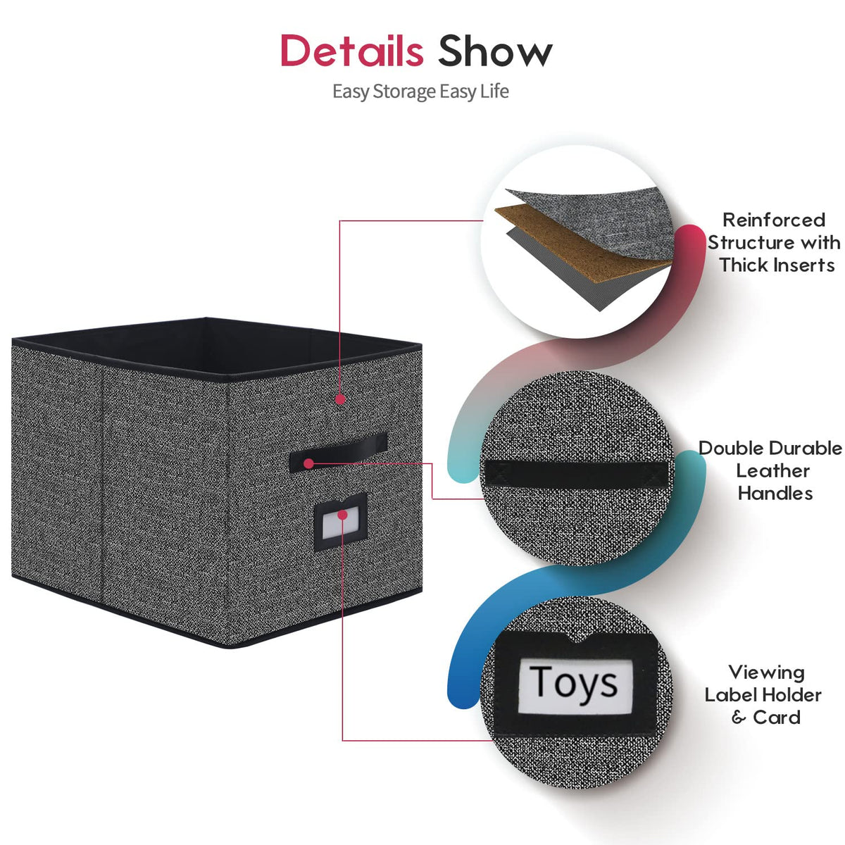 • Q: How can I maintain or clean these storage cubes? A: For maintenance, you can wipe the storage bins with a damp cloth to clean them, as they are made of fabric and cardboard.
