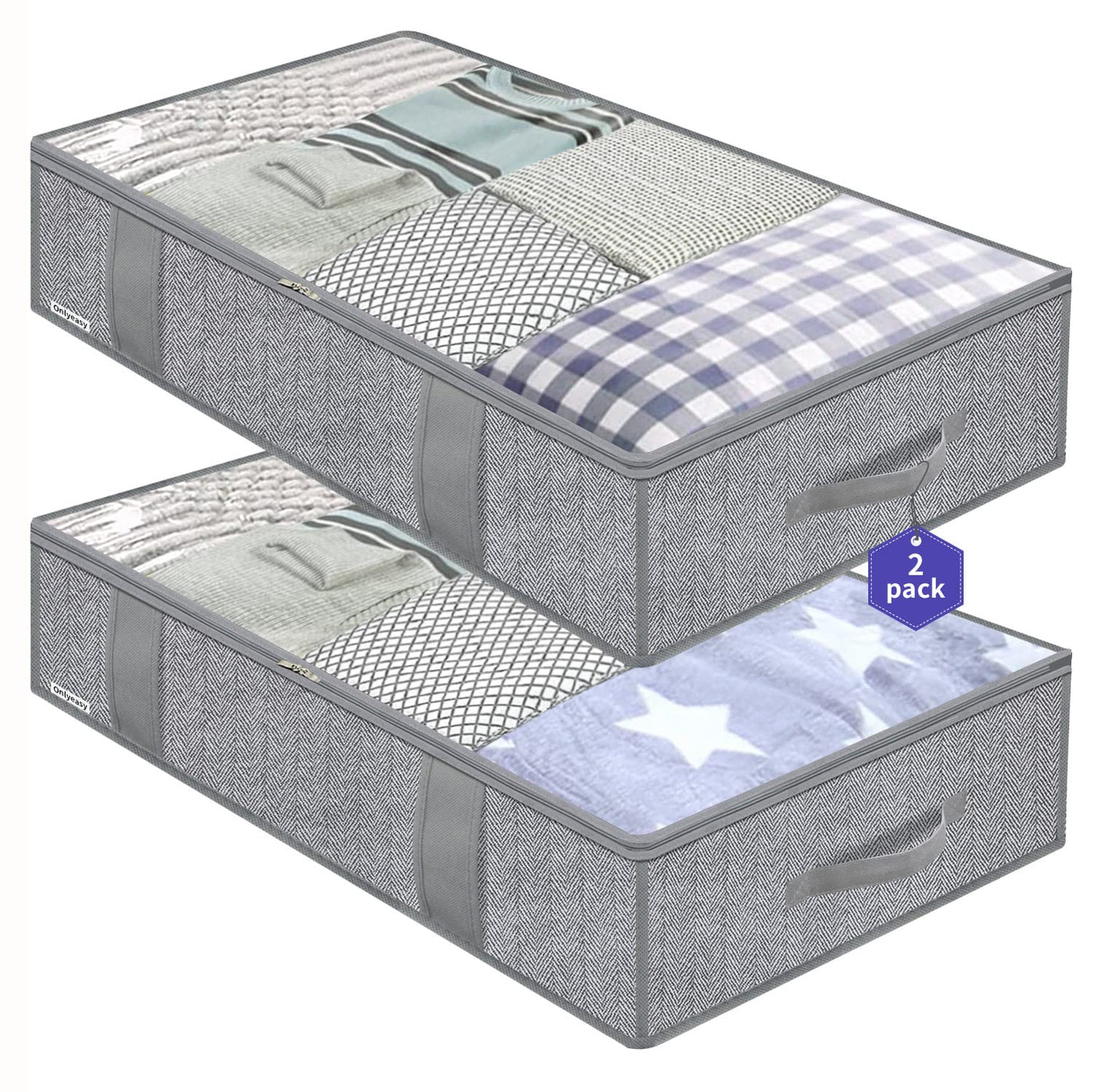 Onlyeasy Large Underbed Storage Bags Organizer Container (2 Pack) with 4 Handles and 2 Sturdy Zippers, Blankets Clothes Comforte