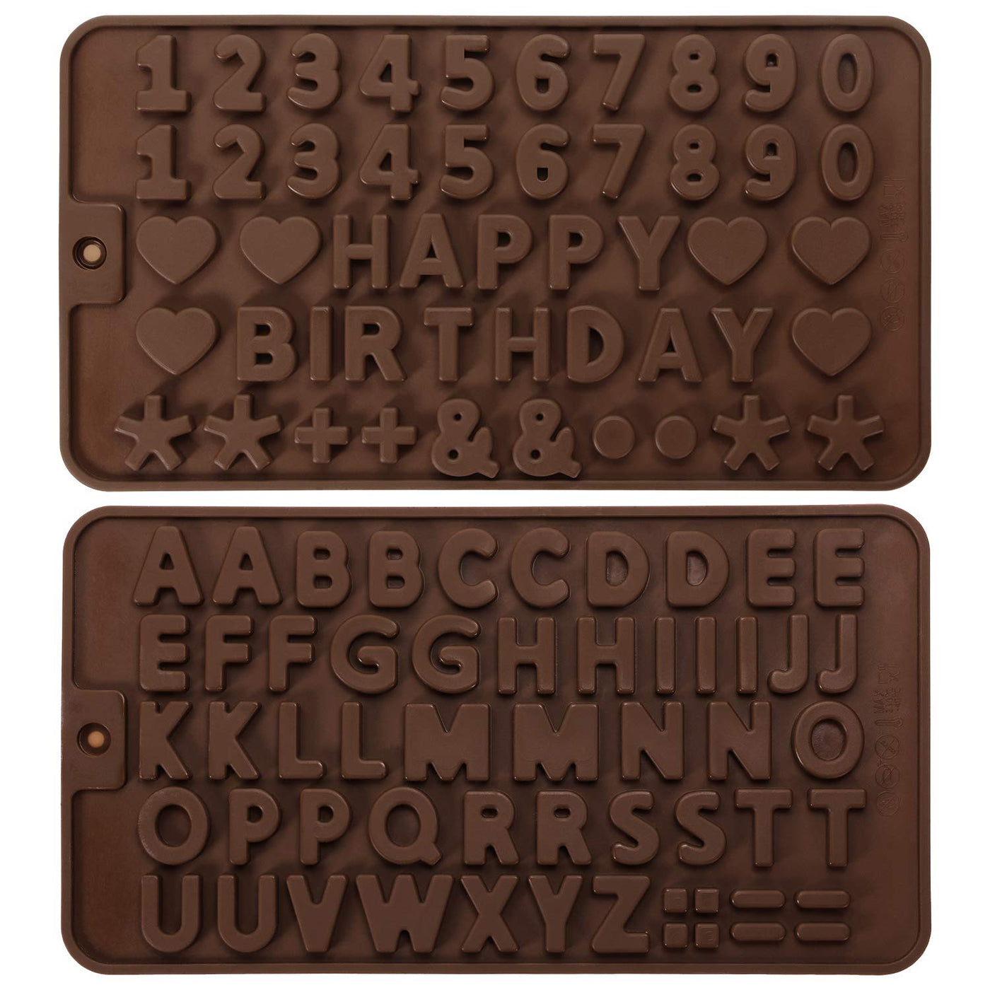 Onlykxy 2 Pieces Brown Chocolate Silicone Molds, Letter Number Molds, Baking Birthday Molds Silicone