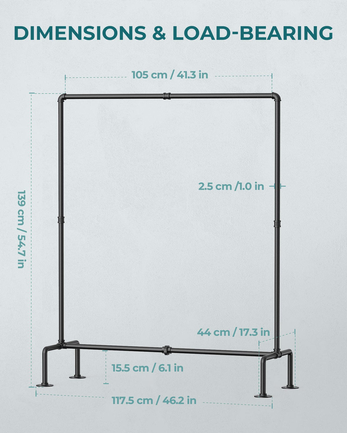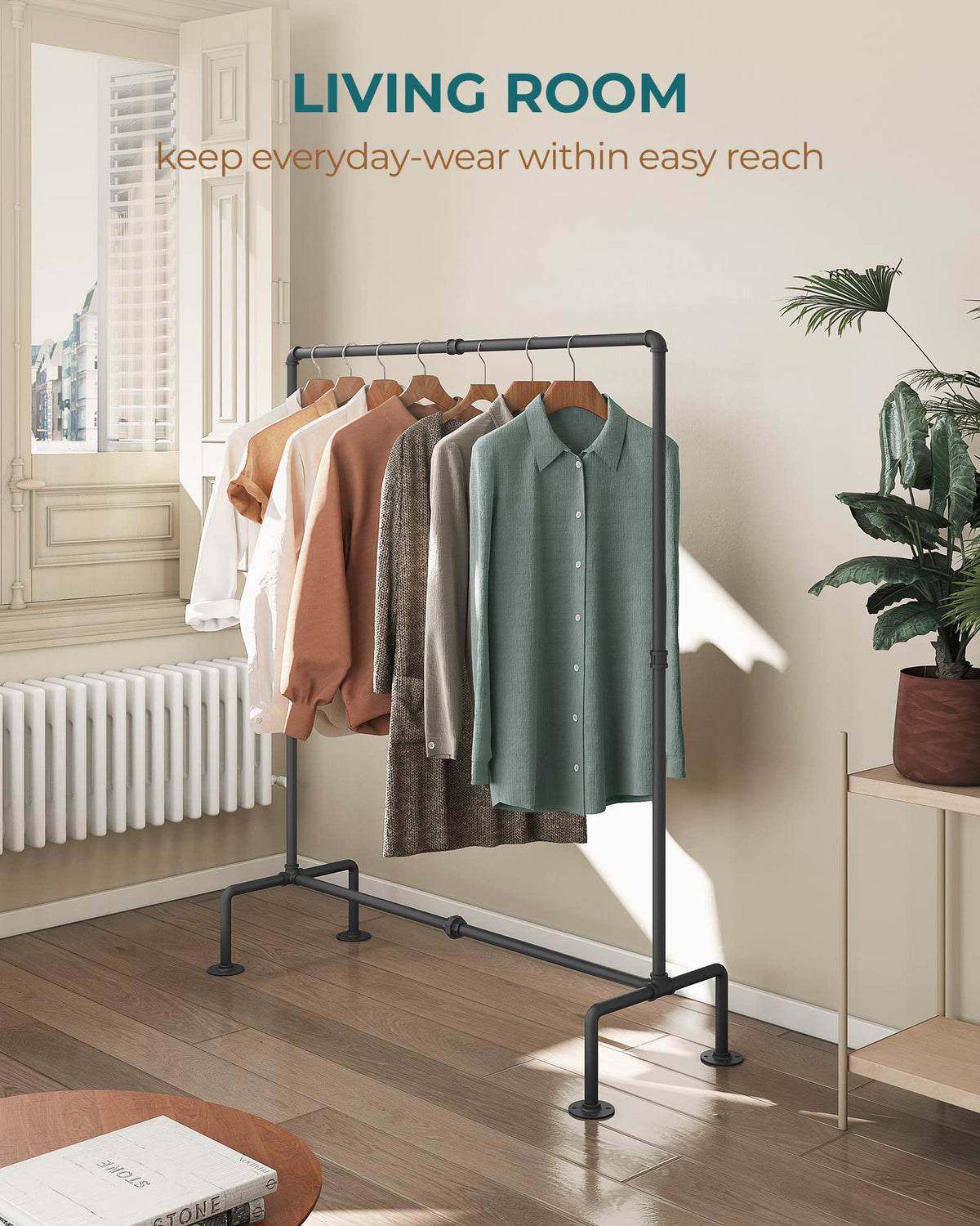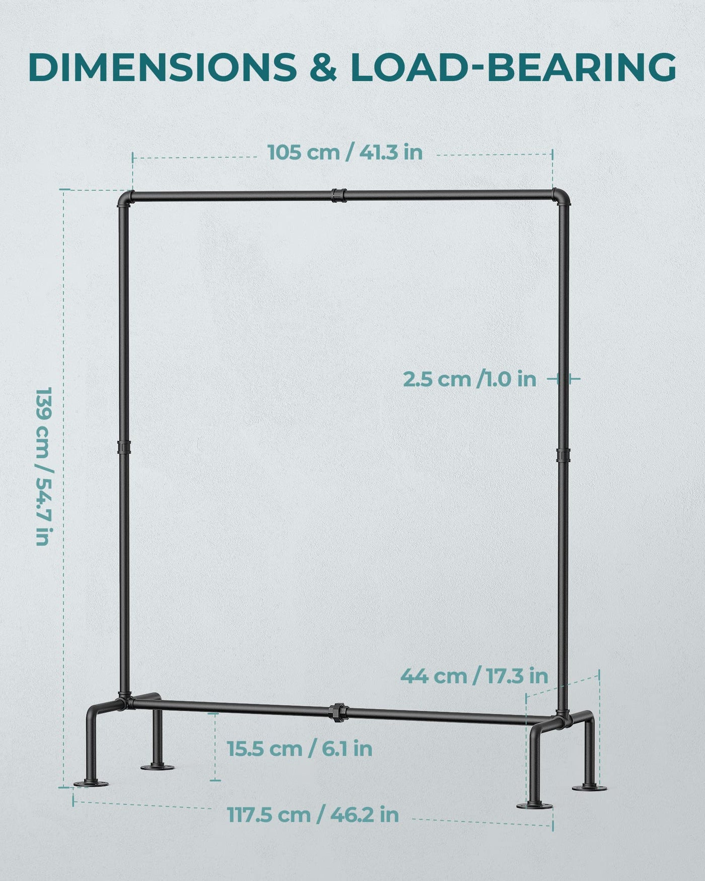• Q: Does the clothing rack have a specific style or design? A: The clothing rack features an industrial pipe design that adds a retro aesthetic, complementing various room styles.