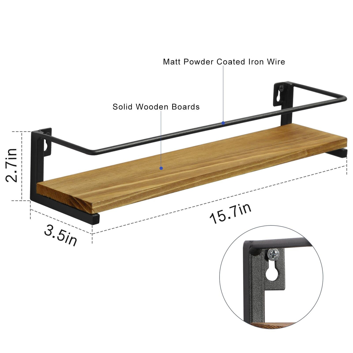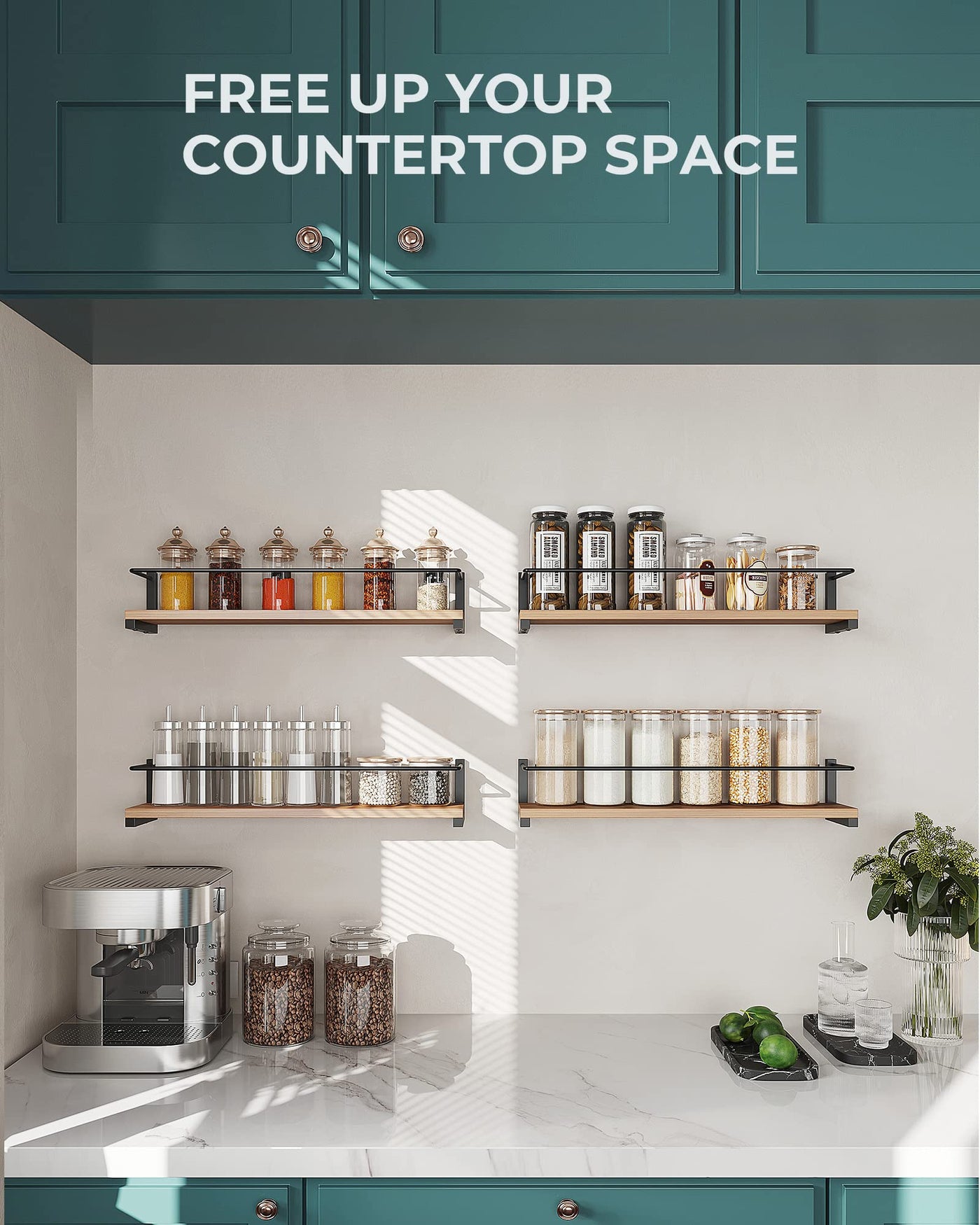 OROPY Spice Rack Wall Mounted, Rustic Wood Hanging Rack for Over The Stove, Kitchen Wall, 2 Pack
