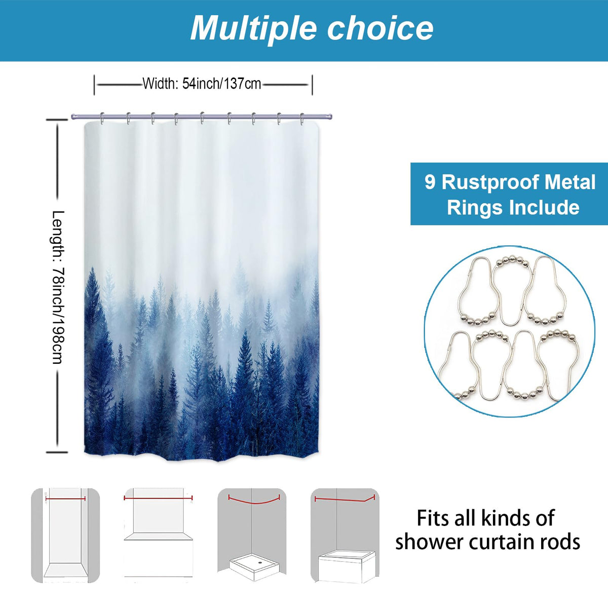 • Q: Can this shower curtain be used in different bathroom styles? A: Yes, the unique misty forest design of the shower curtain makes it suitable for various bathroom styles and renovations, adding a lively and artistic touch.