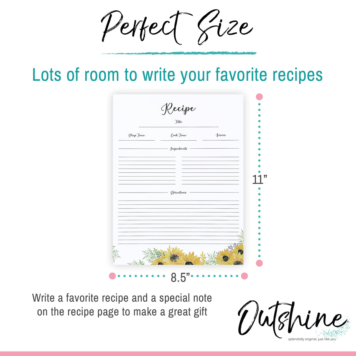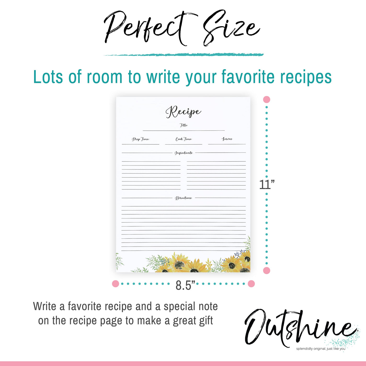 Outshine Premium Recipe Paper for 8.5'' x 11'' Recipe Binders Sunflower Design (50 Sheets) | Refill Pages for Recipe Binder | No-Smear Matte Paper | Great Gift for Mom Sister Daughter Friend