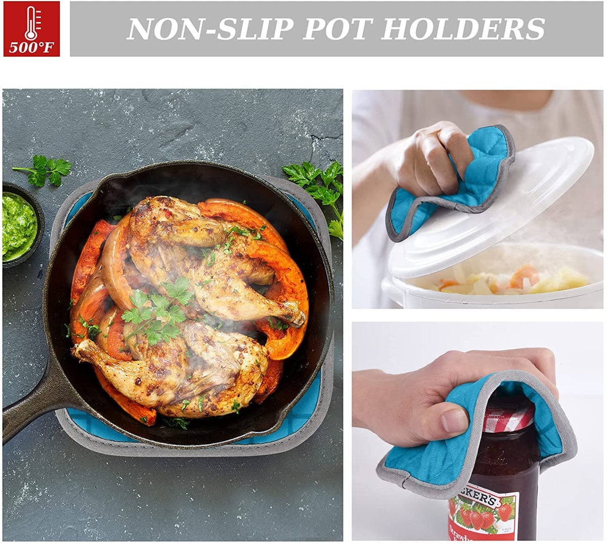 - Q: What materials are used in these oven mitts and pot holders? A: The oven mitts and pot holders are made from pure cotton and silicone, ensuring heat resistance and durability.