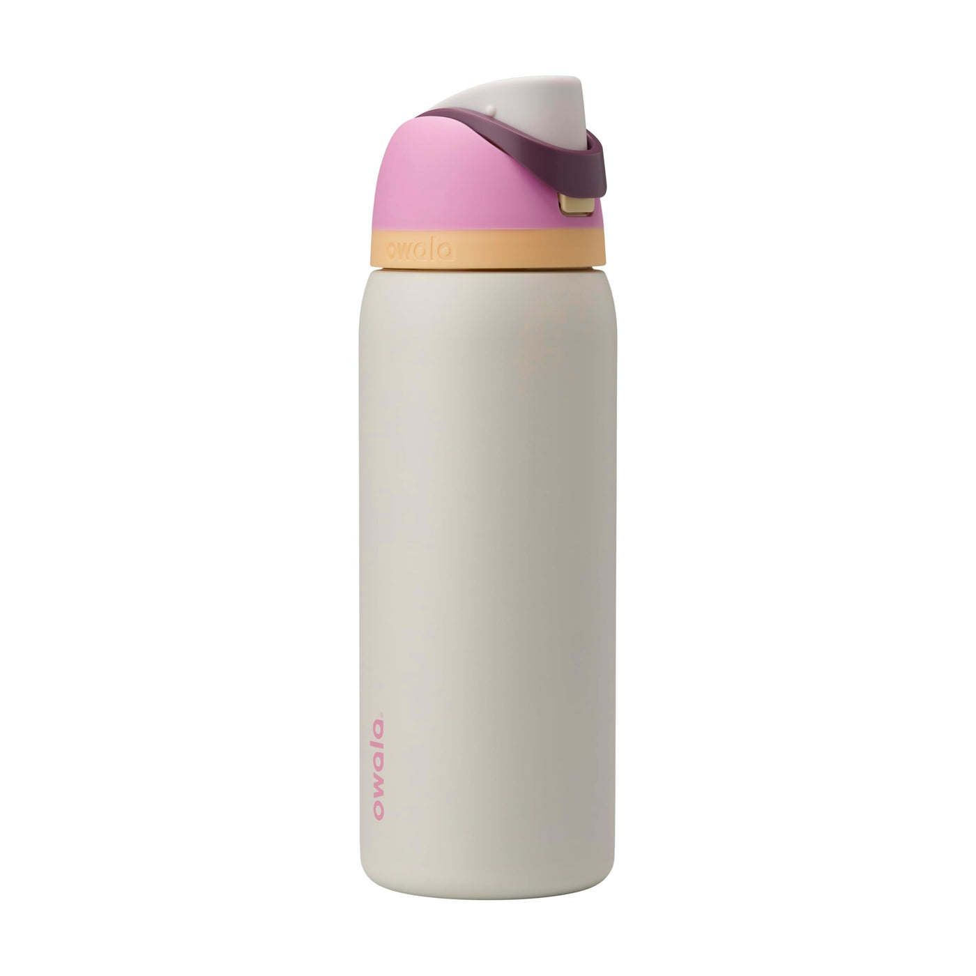 The Owala FreeSip Insulated Stainless-Steel Water Bottle with Locking Push-Button Lid easily tackles every thirst. With a built-in, easy-clean straw and a wide-mouth opening, the FreeSip reusable bottle is designed for drinking two different ways: sipping upright through the straw or tilting back to swig from the wide-mouth spout opening. Add in a push-to-open lid and playful colors, and staying hydrated has never been simpler-or more fun. Additional features include double-wall insulated stainless steel that keeps drinks cold up to 24 hours, a carry loop that doubles as a lock, a cup holder-friendly base, and a wide opening for easy cleaning and adding ice. The Owala FreeSip Insulated Stainless-Steel Water Bottle with Locking Push-Button Lid is available in three sizes: 24-Ounce, 32-Ounce, and 40-Ounce. Lid is dishwasher safe; hand wash cup. Not for use with hot liquids. Manufacturers limited lifetime warranty.