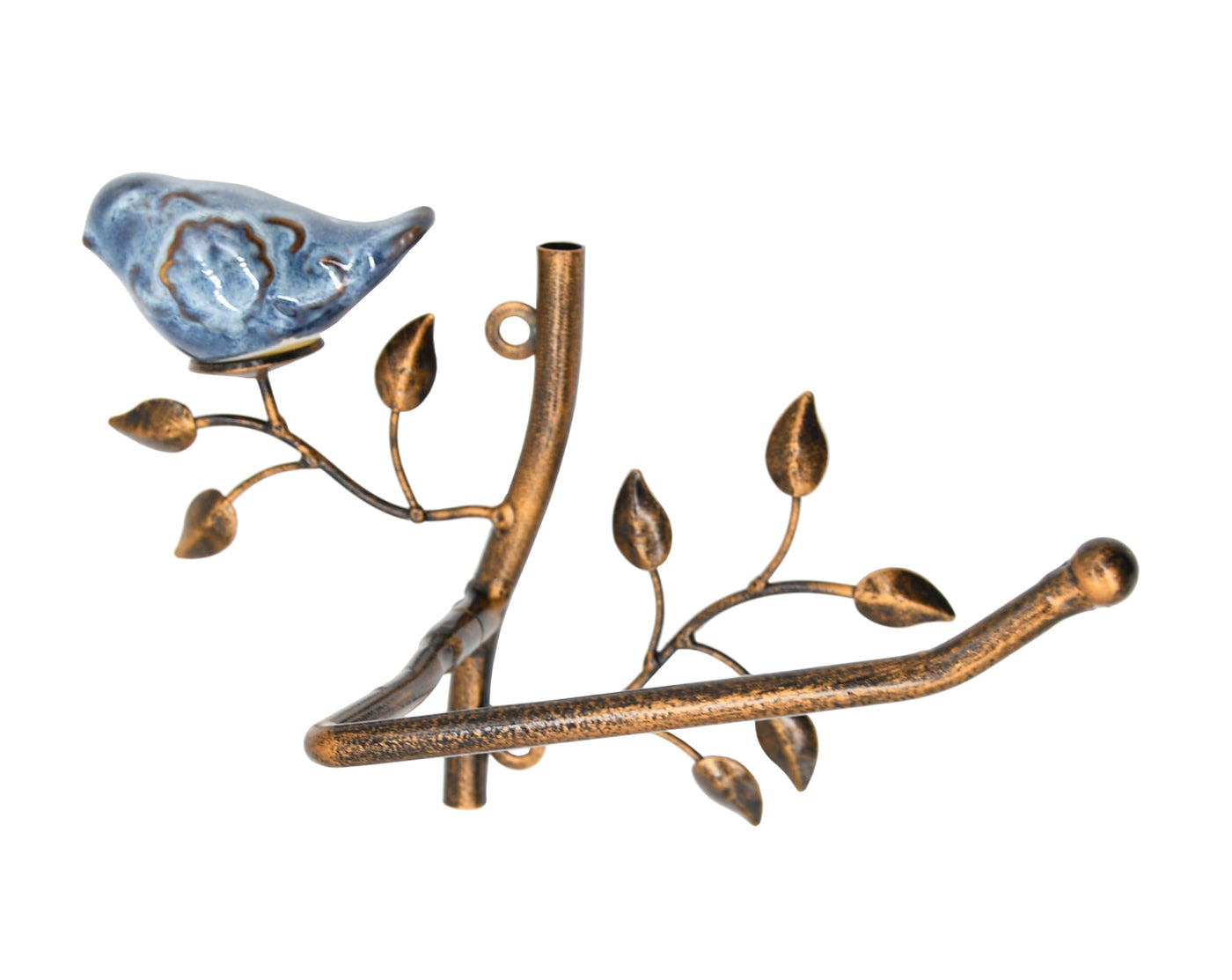 Owlgift Wall Mounted Metal Toilet Tissue Holder W/Ceramic Bird, Roll Organizer For Bathroom - Bronze