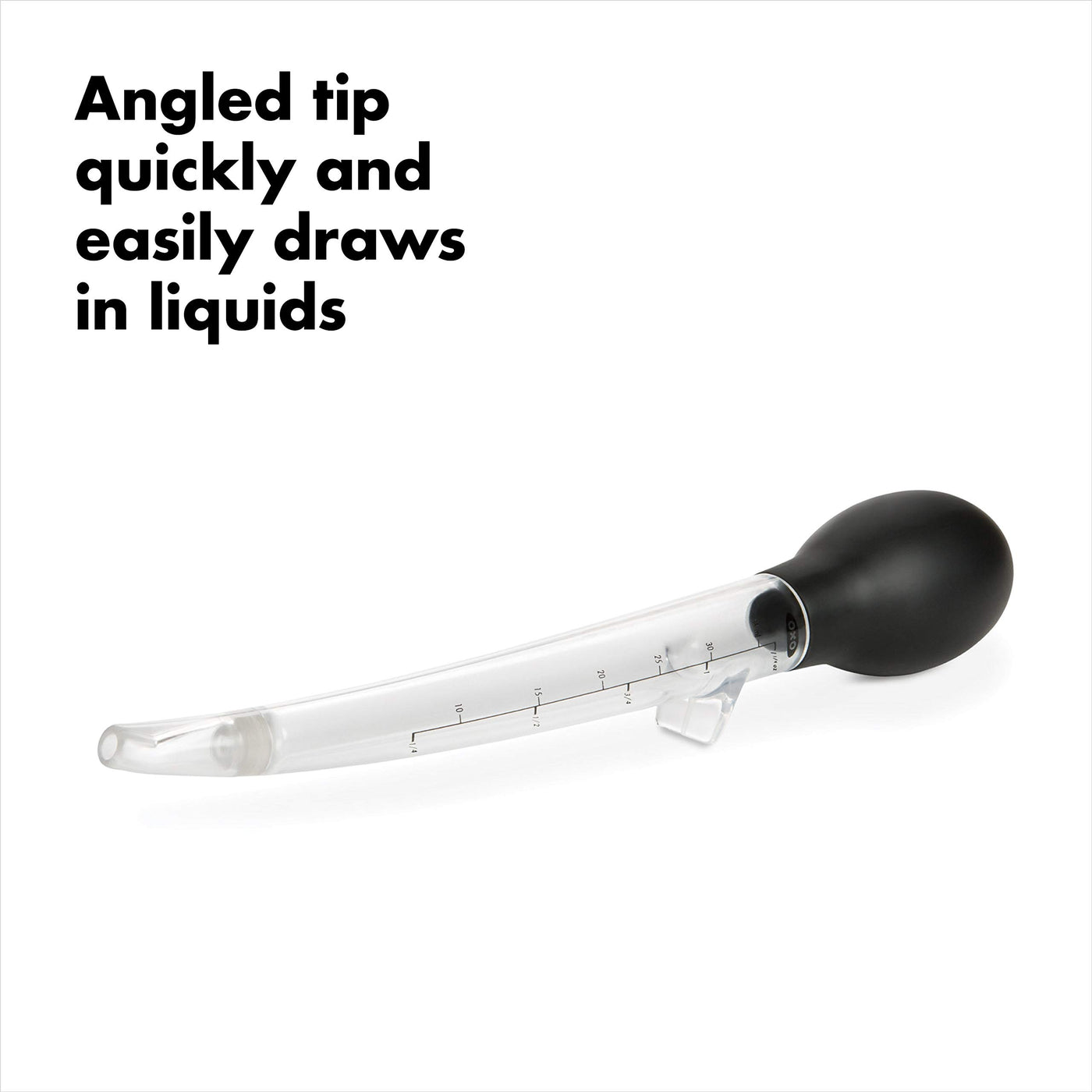 • Q: What is the main purpose of the OXO Good Grips Angled Turkey Baster? A: The OXO Good Grips Angled Turkey Baster is designed for basting large meats, allowing you to easily reach basting juices in pans and ovens without the risk of burns.