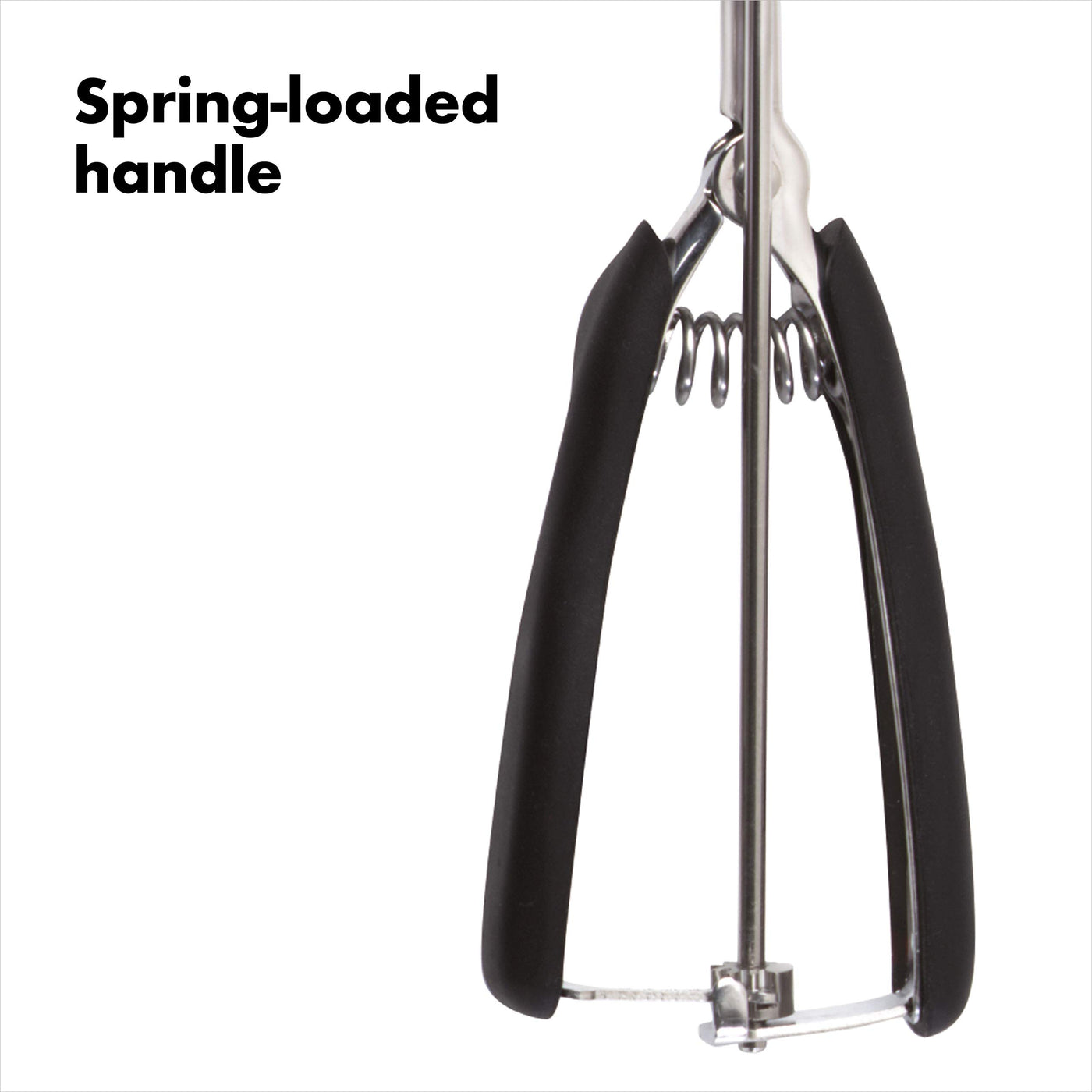 • Q: What features make the OXO Cookie Scoop user-friendly? A: The cookie scoop features a soft, comfortable spring-loaded handle that absorbs pressure, allowing for easy and smooth release of cookie dough.