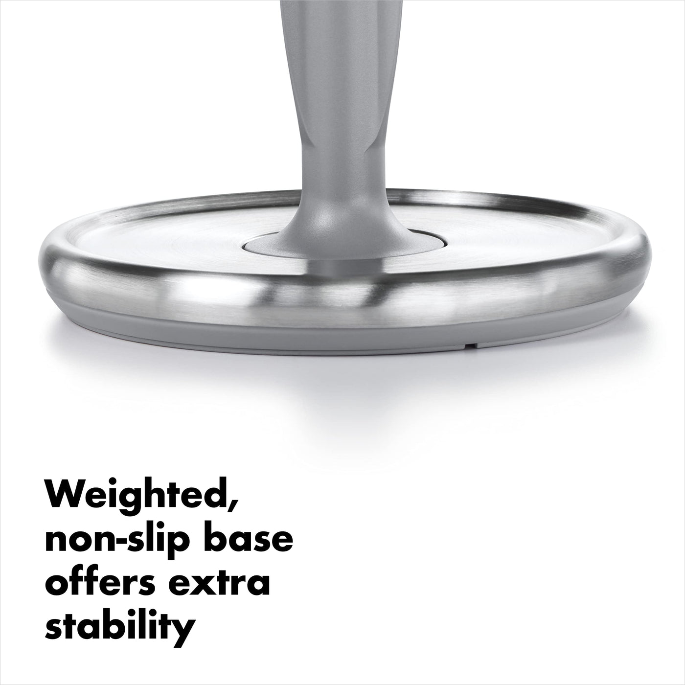 • Q: What makes the OXO Good Grips Steady Paper Towel Holder easy to use? A: The OXO Good Grips Steady Paper Towel Holder is designed for one-handed use, allowing you to easily tear off paper towels without the holder tipping or sliding.