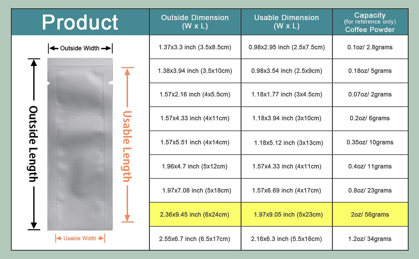 Pabck 100 Pcs 2.36X9.45 Inch (Inside Size 1.97X9.05 Inch) Coffee Food Storage Heat Sealable 3.34Mil Mylar Pure Foil Bag Vacuum P