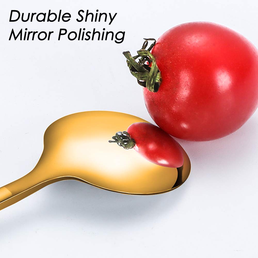 - Q: Do the spoons have a special finish? A: Yes, the spoons feature a shiny mirror finish that adds a modern touch and matches well with different flatware.