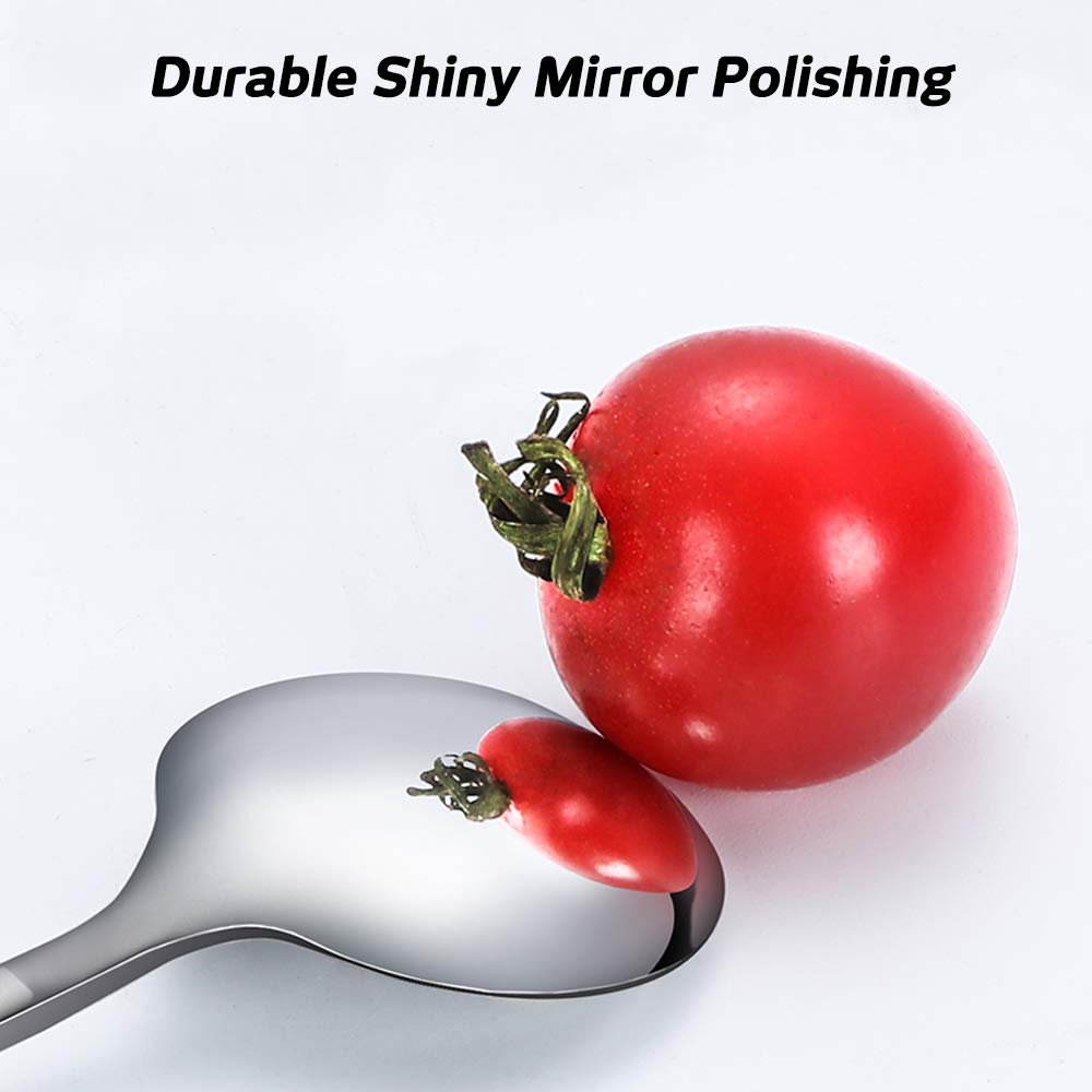 - Q: What type of finish do the spoons have? A: The spoons feature a shiny mirror finish that provides a modern design and comfortable handling.