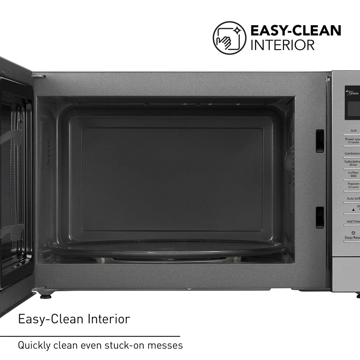• Q: How does the Genius Sensor work in this microwave? A: The Genius Sensor automatically adjusts the power and cooking time based on the type of food being cooked, ensuring optimal results.