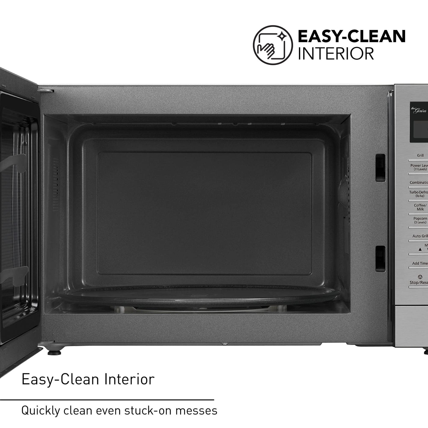 • Q: Is this microwave easy to clean? A: Yes, the microwave features an easy-clean interior that allows you to wipe off splatters and spills with a damp cloth.