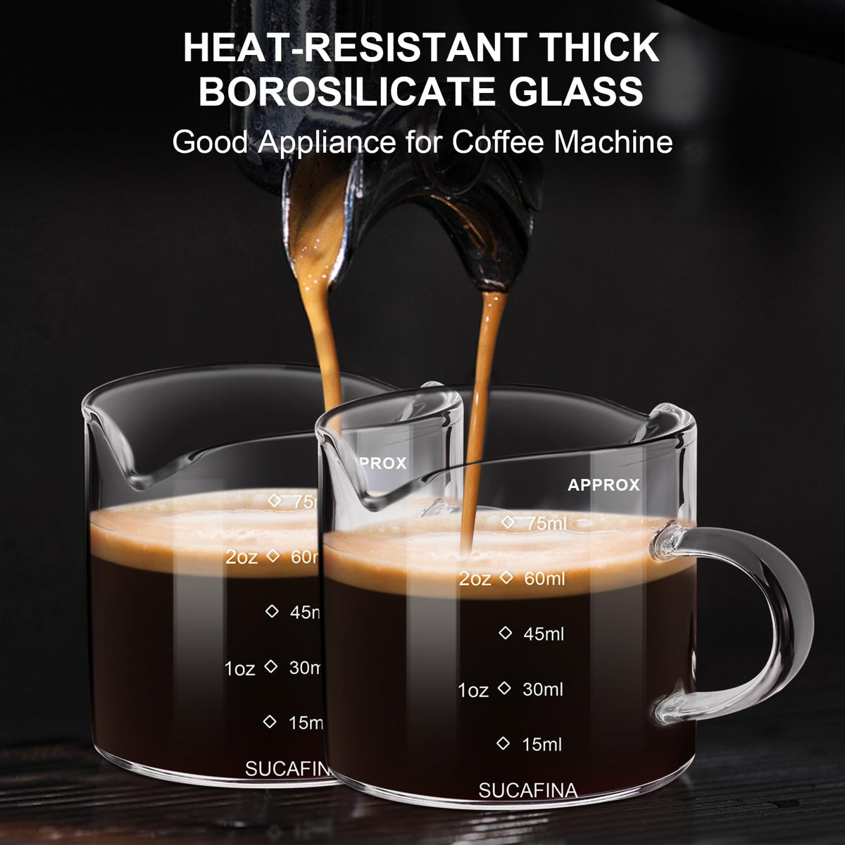 Paracity Espresso Cup With Handle Set Of 2, Double Spout Glass Measuring Cup With Dual Scale, Espresso Shot Glass With V-Shaped