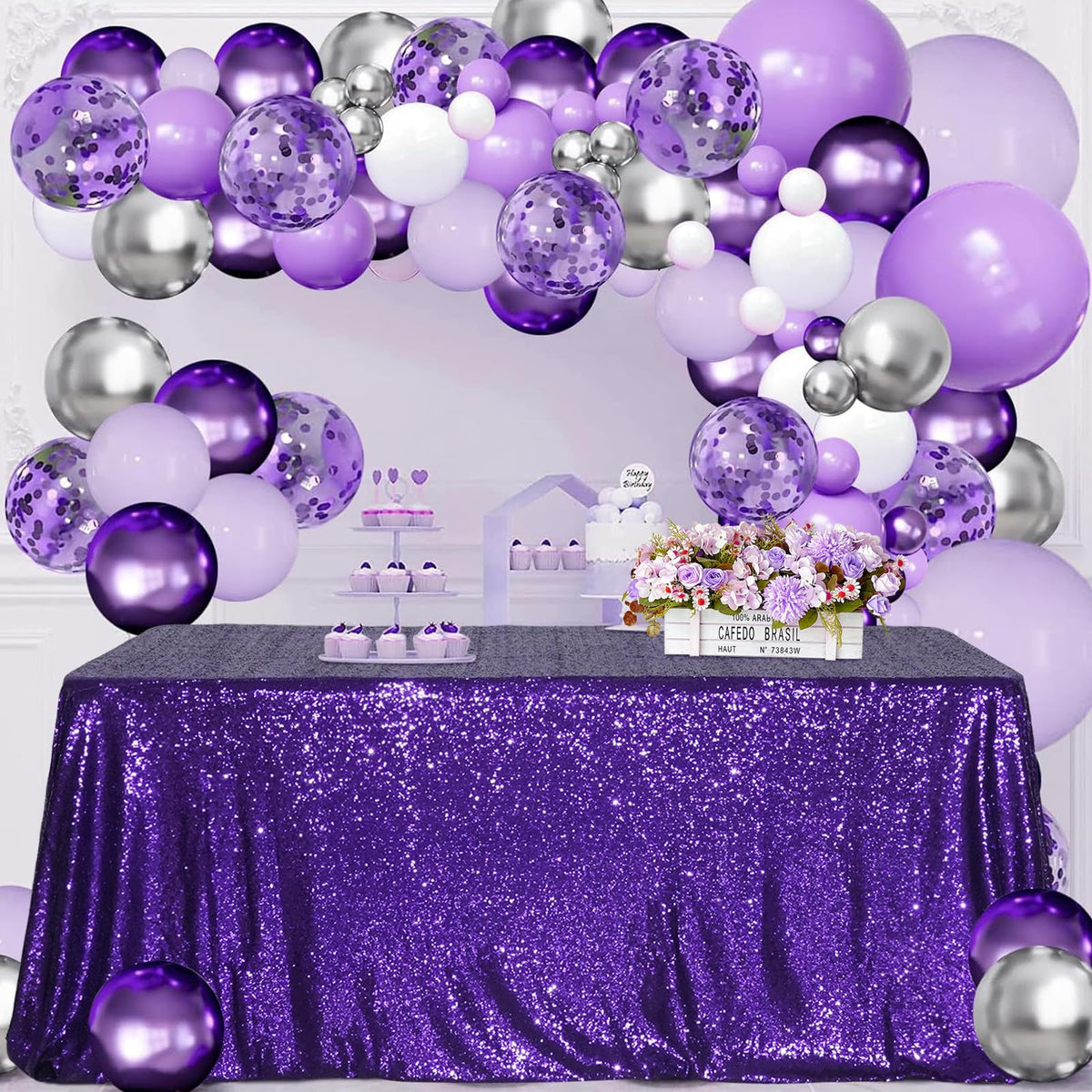 Partydelight 60''X102'' Purple Sequin Tablecloth For Wedding, Party, Birthday.