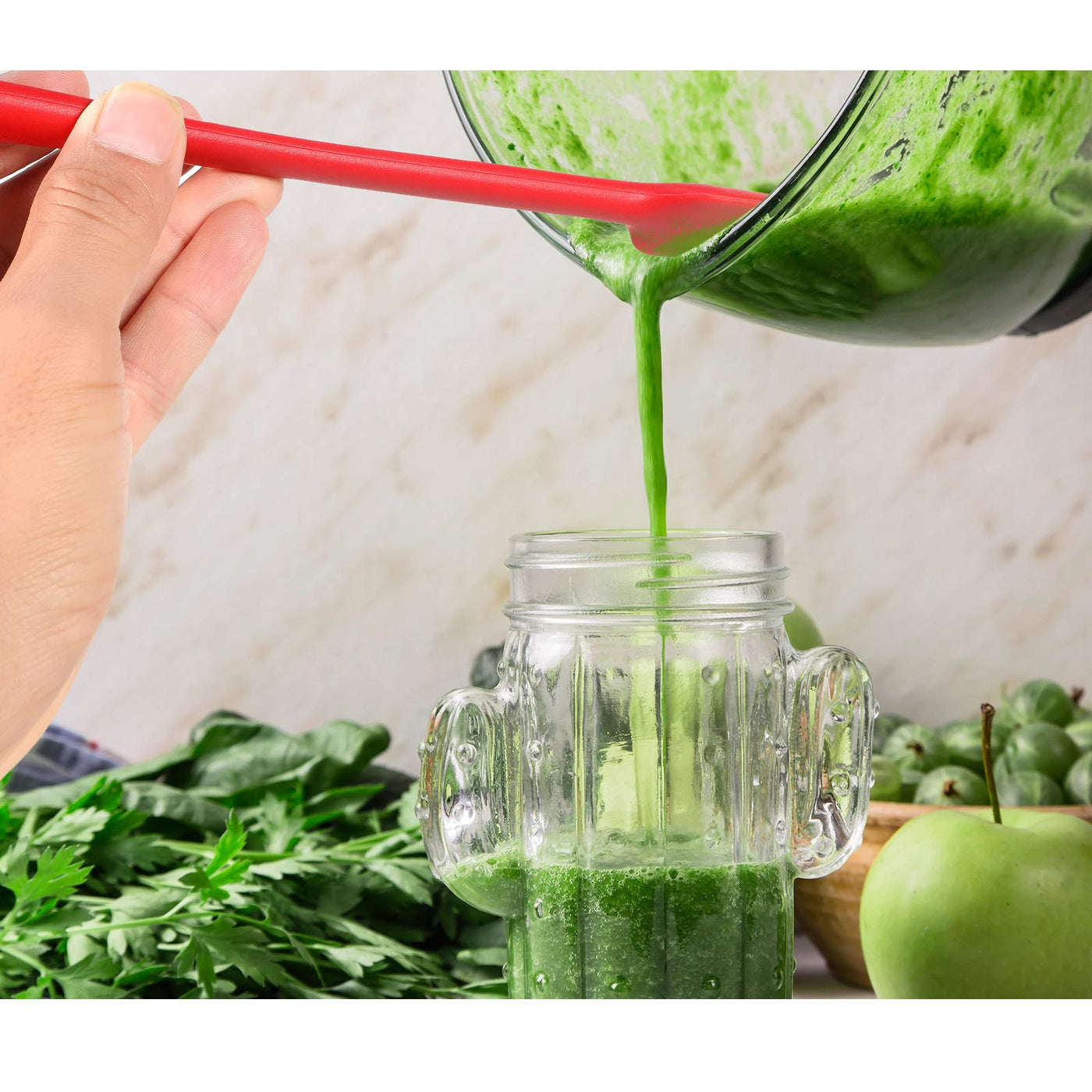 - Q: How does the long handle benefit use? A: The long handle design allows users to easily reach the bottoms of jars and corners, helping to reduce waste.