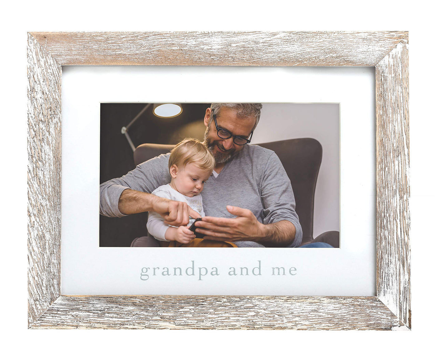 Theres no bond quite like the bond between a baby and their Grandpa. Celebrate that special bond with Pearhead Grandpa and Me Sentiment frame. This rustic white and wooden frame is a perfect, modern keepsake frame to cherish forever. The frame includes a white acid-free beveled mat with Grandpa and Me Printed in gray. Have fun adding an adorable 4 X 6 Picture of baby and Grandpa inside the frame. This frame includes an easel and triangle hanger, so you can place on any bookshelf or hang on any wall. This frame also makes the perfect gift for Grandpas birthday, Fathers Day, or just because! Have fun wrapping this frame up and gifting to Grandpa! As baby grows up, they will always be able to cherish the special bond with their Grandpa and will forever cherish Pearhead sentiment frame. Product dimensions: 8 W x 6.25 H x .5 D; Photo insert: 4 X 6