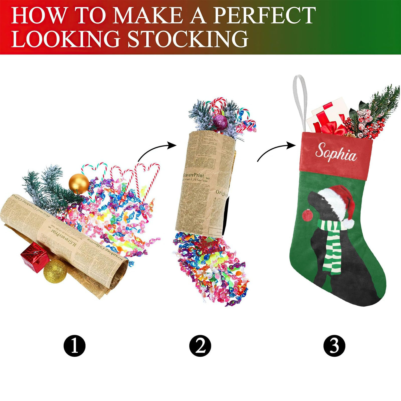 Personalized Custom Name Christmas Stockings Christmas Black Lab Holiday Dog Holiday Birthday Decor for Kid Pets 17.52 x 7.87 In
