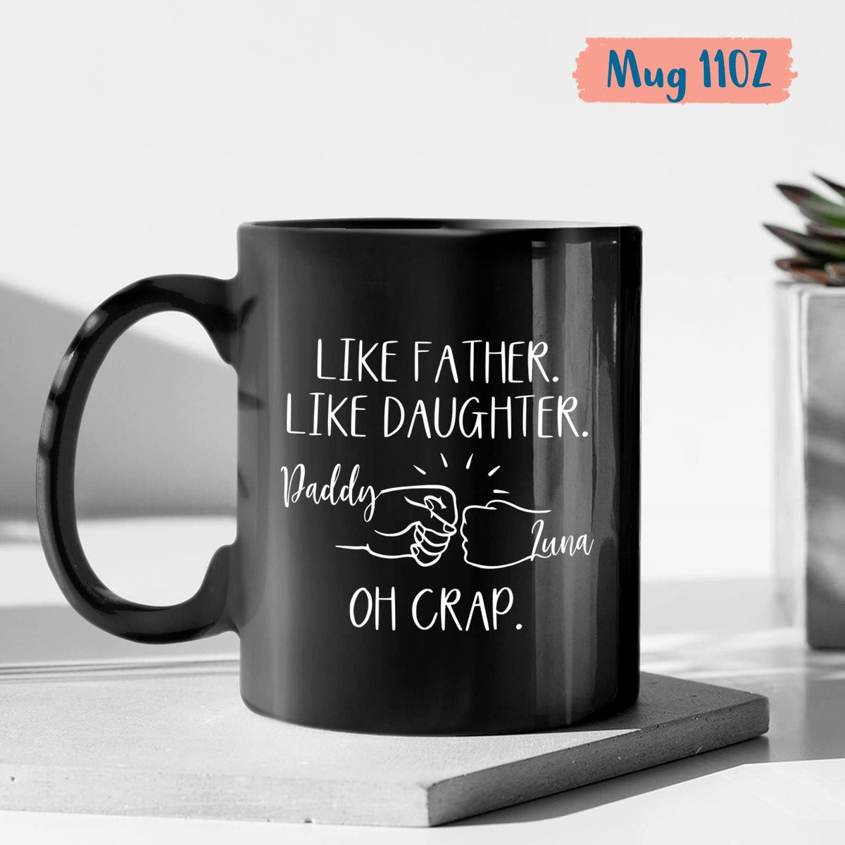 Personalized Father Coffee Mug, Like Father Like Daughter Cup, Fist Bump Ceramic Mug, Oh Crap Tea Cup, Gifts Ideas for Dad, Dadd