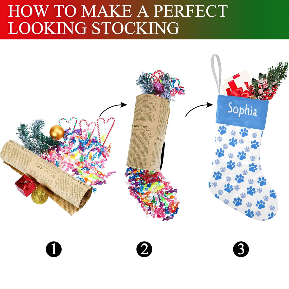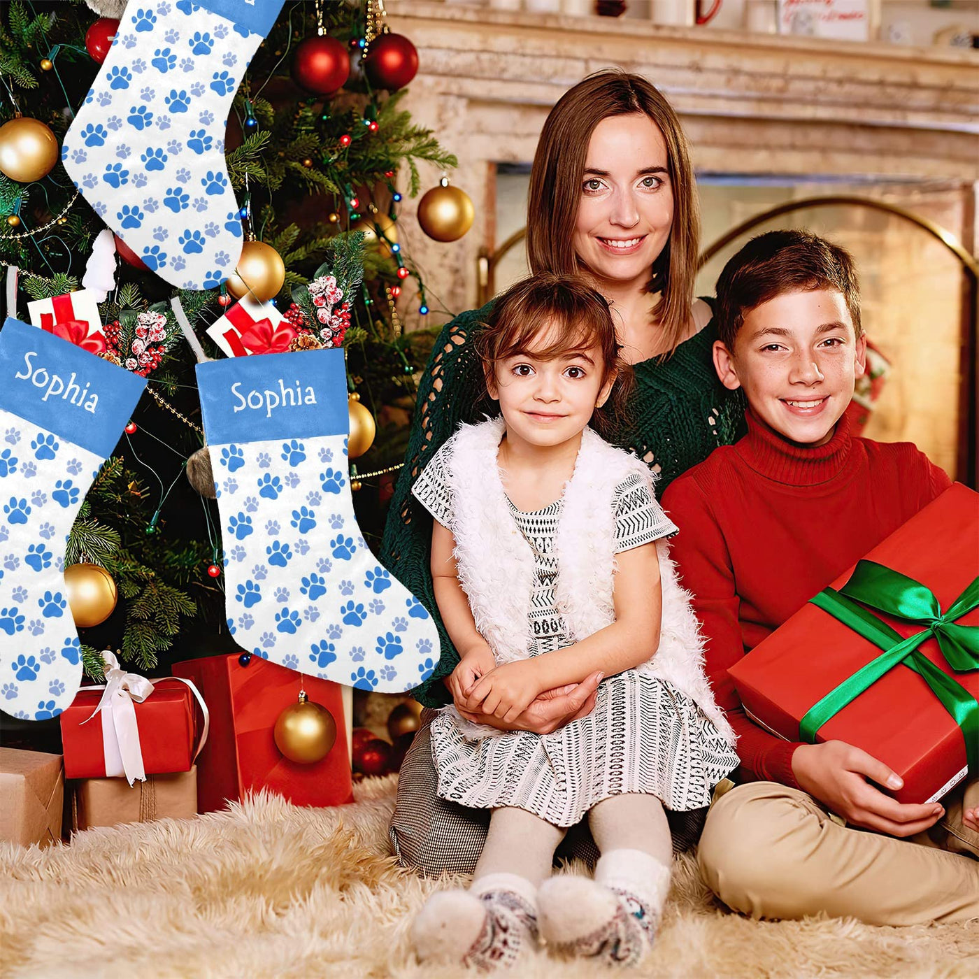 Personalized Name Dog Paw Print Blue Christmas Stockings Text Custom Xmas Holiday Pup Dog Gift Decor 17.52 x 7.87 Inch