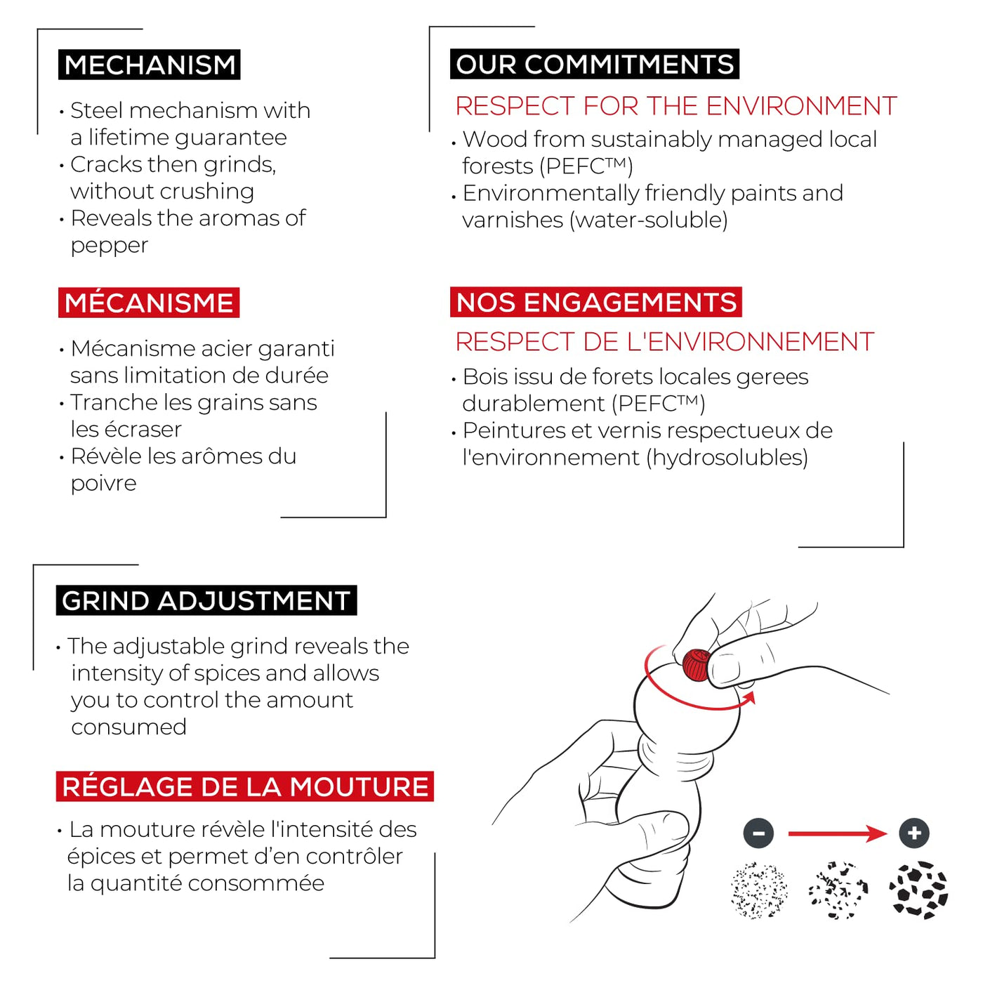 - Q: Is there a matching salt grinder available? A: Yes, Peugeot offers a matching salt grinder to complement the Paris Manual Pepper Mill.