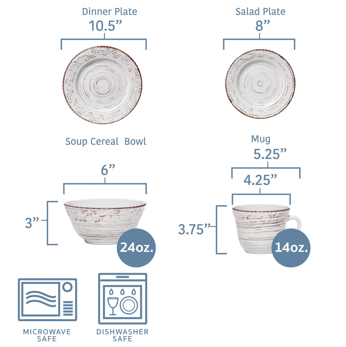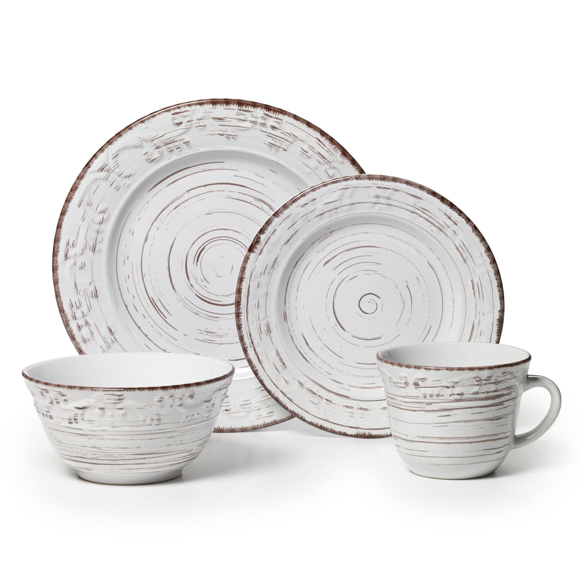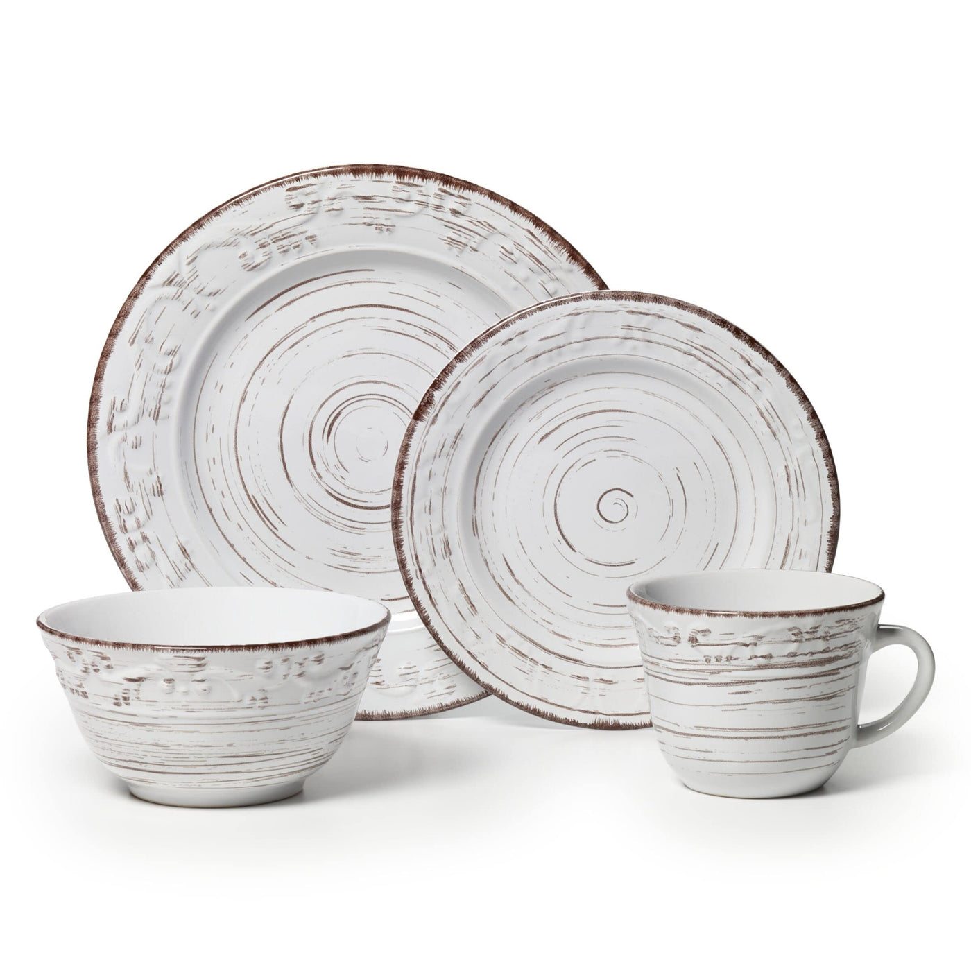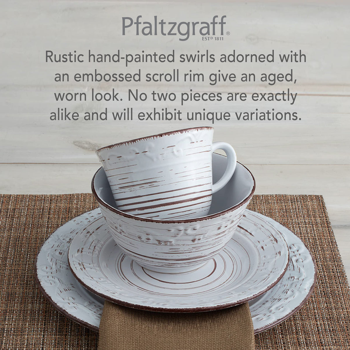 Pfaltzgraff Trellis White 16-Piece Dinnerware Set, Service for 4, Distressed White