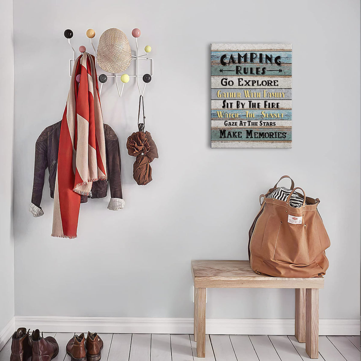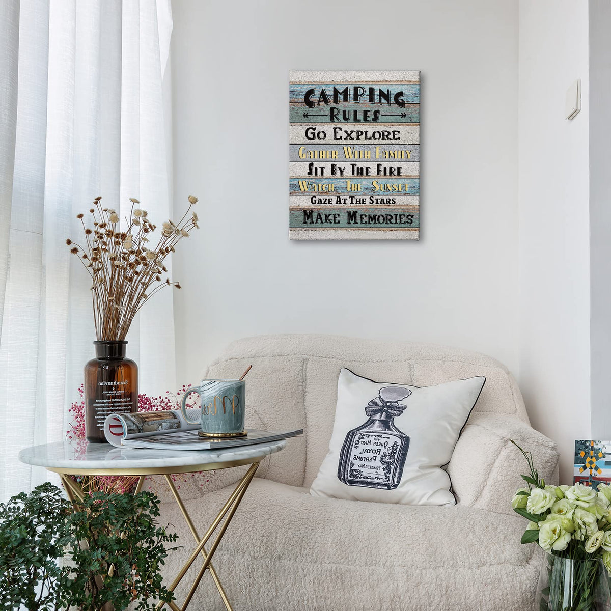 Phamte Funny Camping Rules Quote Wall Art, Farmhouse Rustic Camping Rules Camper Signs Print Framed Canvas Painting Artwork Rv H