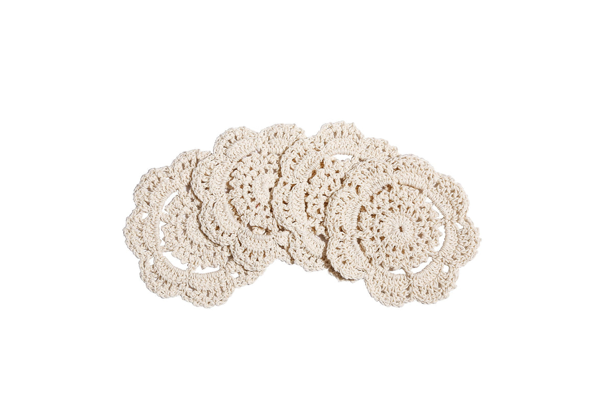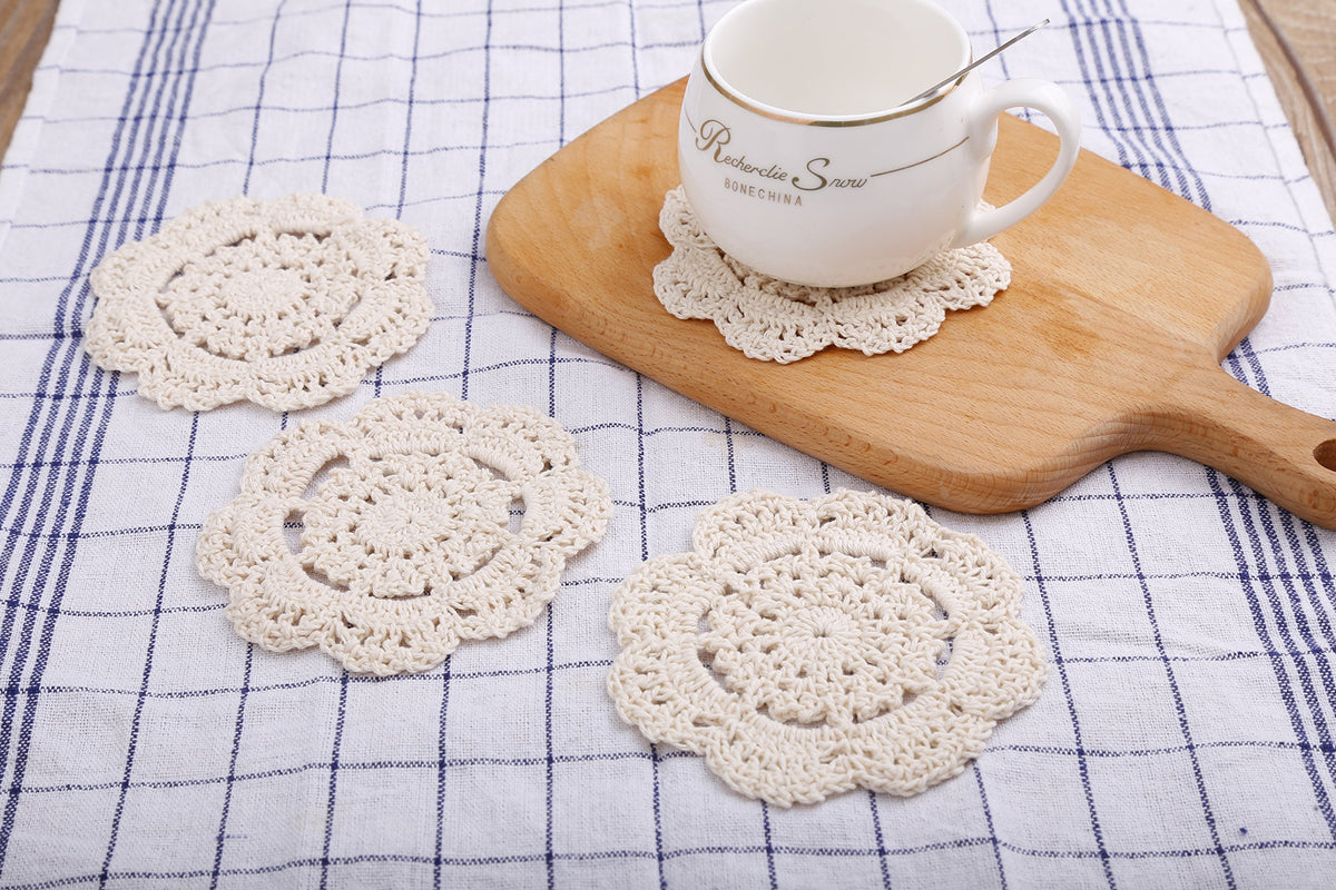 Phantomon Doilies Crochet Cotton Lace Round Handmade Coasters Small Doilies Cloth 4 Inch, Pack Of 4 (Beige)