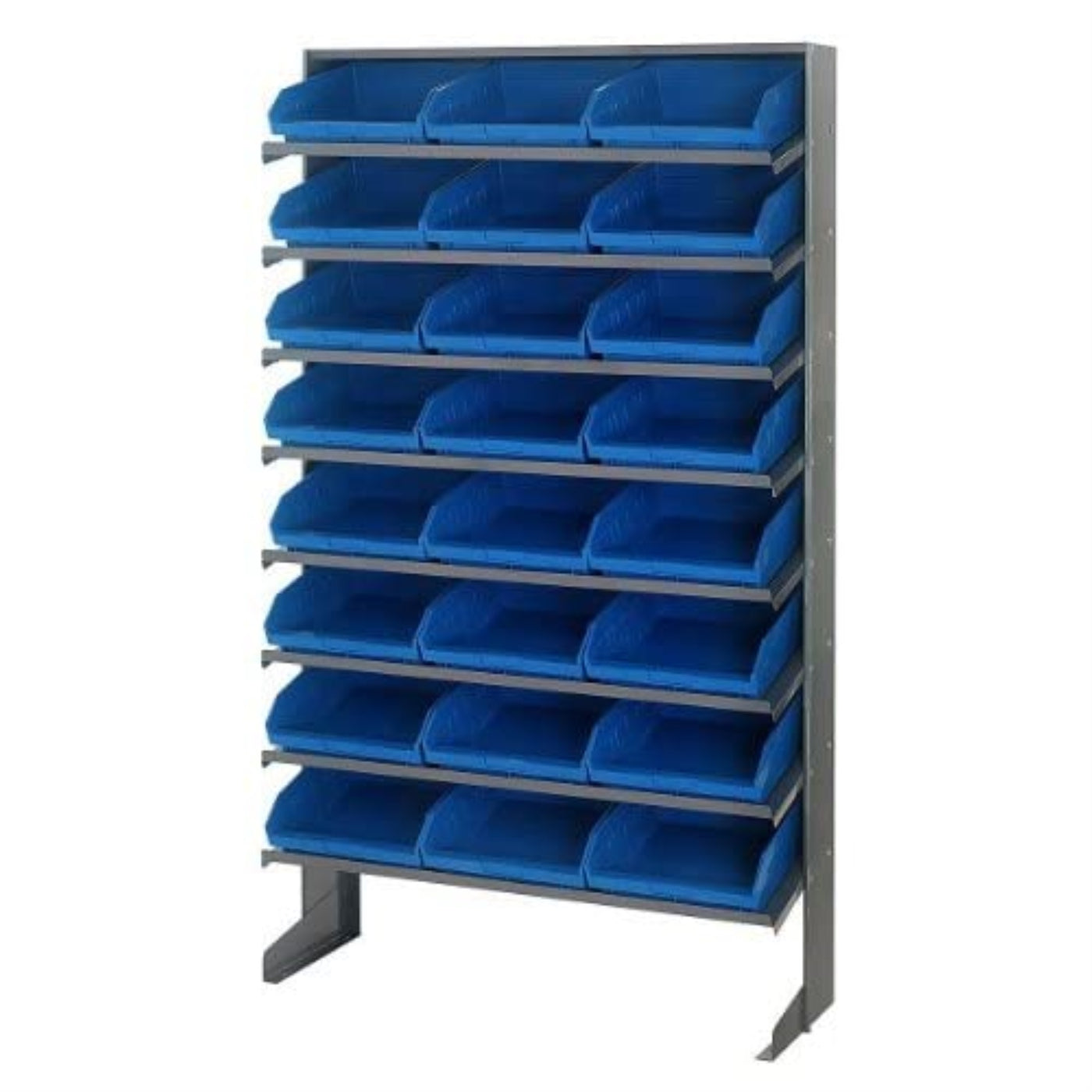 Pick Rack, Slopped, Single Sided, 12D X 36W X 60H, 400 Lbs. Capacity, Includes: (8) Shelves And (24) Qsb109 Blue Bins, Galvanize