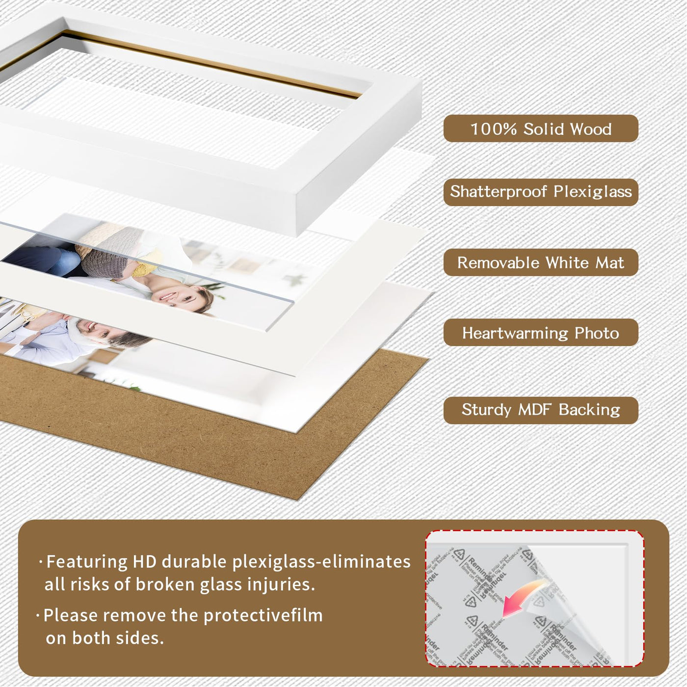 Picture Frames 5x7 2 Pack Made of Solid Wood White for Wall Mounting and Tabletop Display