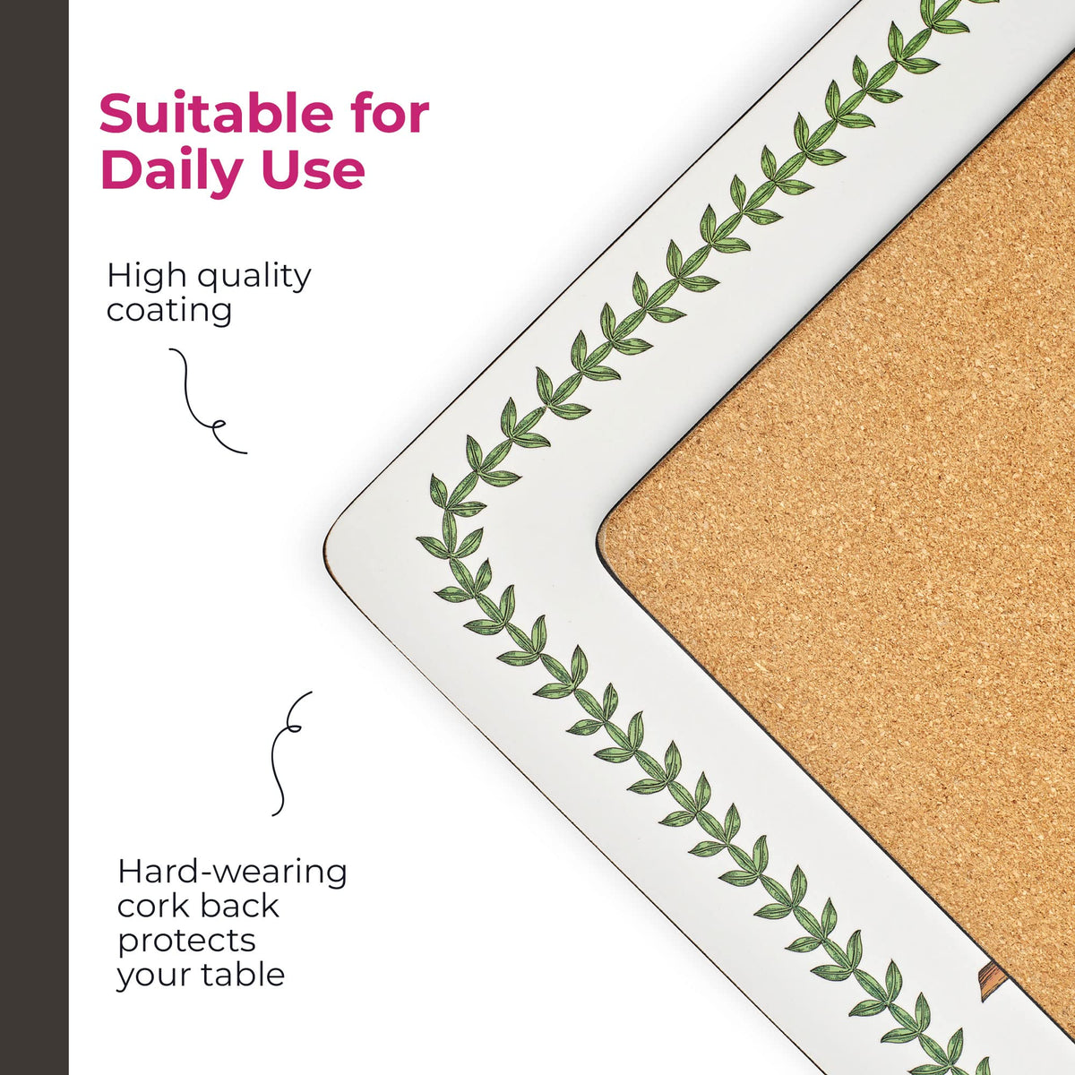 - Q: Do these placemats have a non-slip surface? A: Yes, the cork backing provides a stable grip, preventing the placemats from sliding on your dining table.