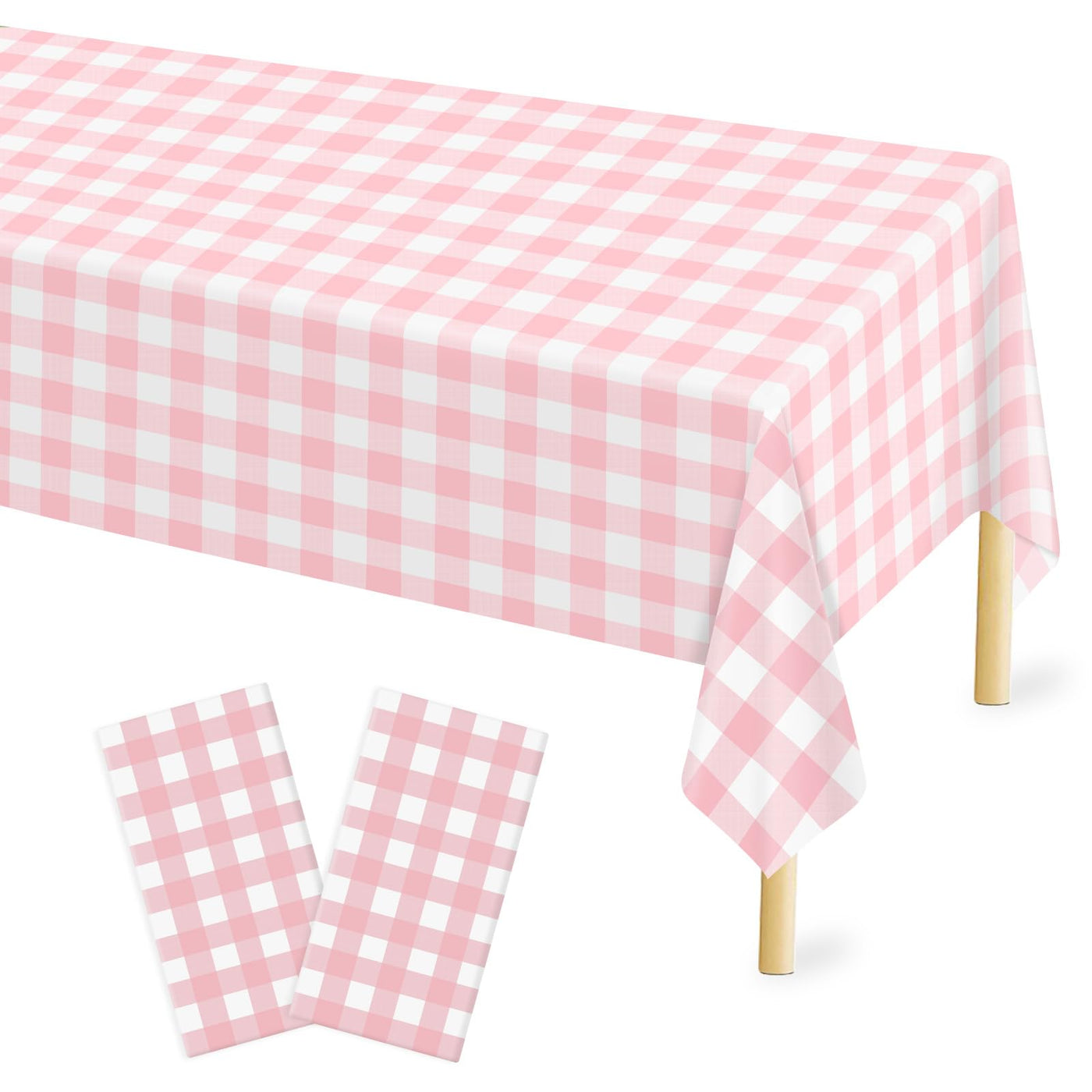 - Q: How many tablecloths are included in the package? A: The package includes 2 pieces of the Pink Gingham Tablecloth.