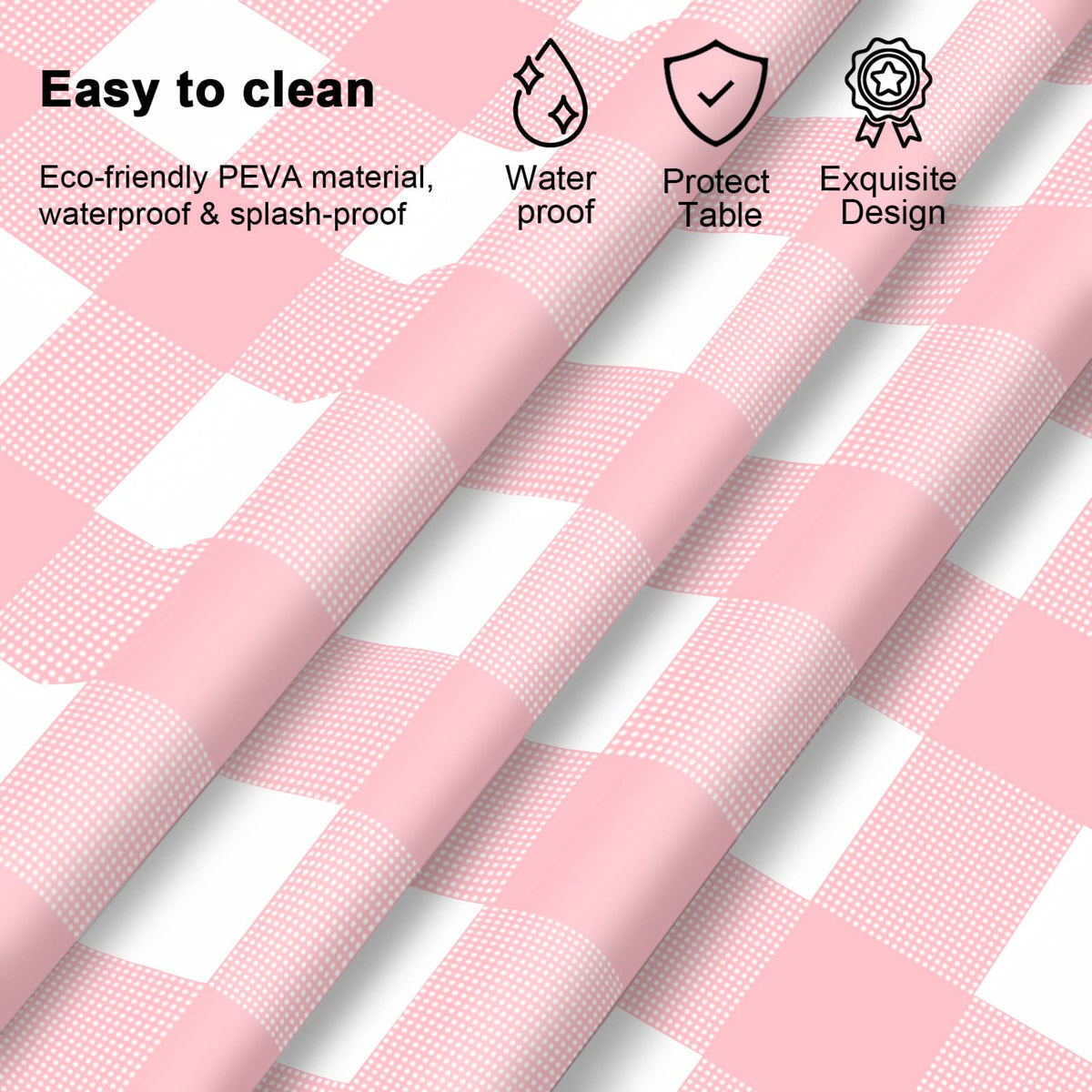 - Q: Is this tablecloth available in other colors or patterns? A: The listing specifically describes a pink gingham pattern; however, other styles may be available in different listings.