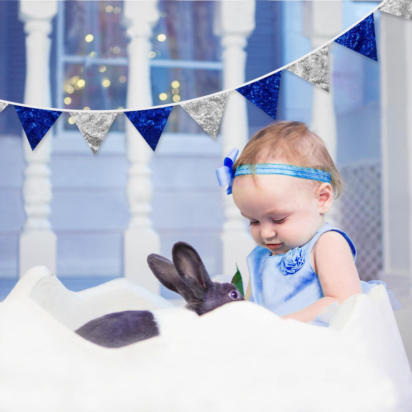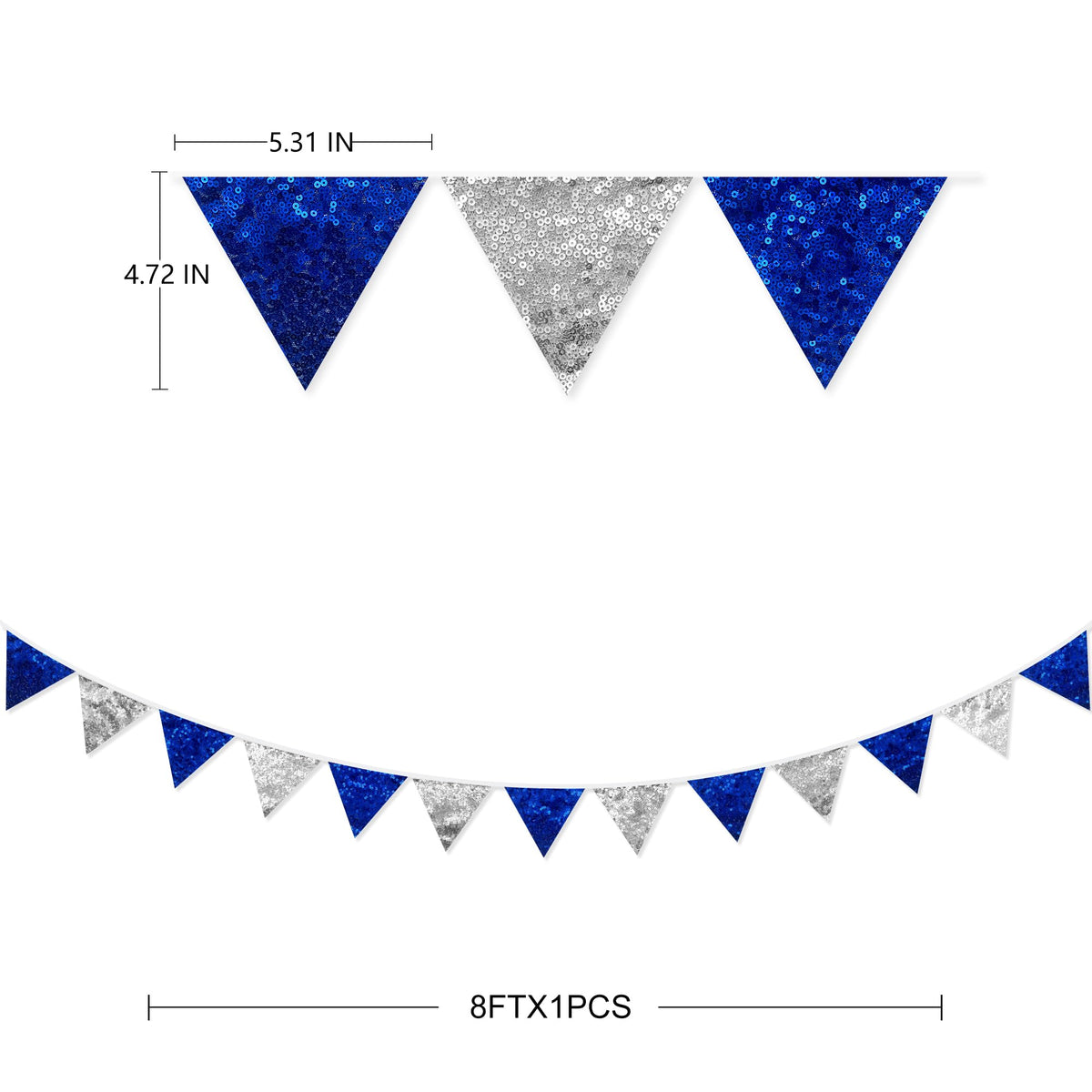 Pinkblume Silver Blue Decorations Double Sided Sequin Fabric Royal Blue Silver Triangle Pennant Banner Flag Bunting Garland For