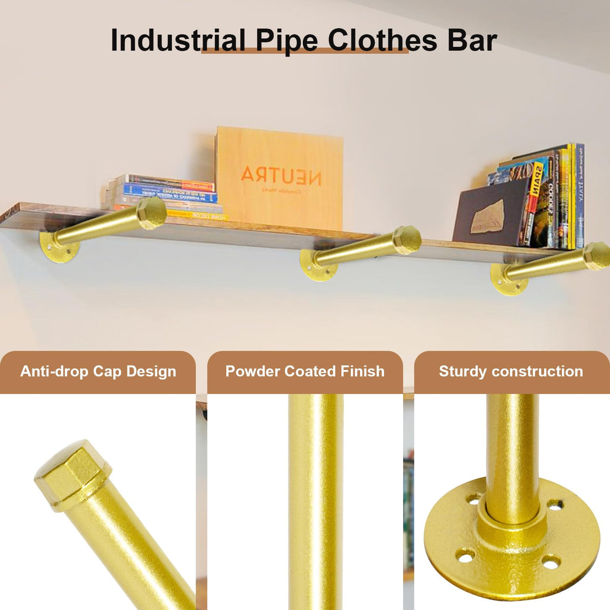 - Q: How does the design of the clothes bar enhance my space? A: The smooth gold finish gives the clothes bar an elegant minimalist design, making it compatible with various home or office decor styles.