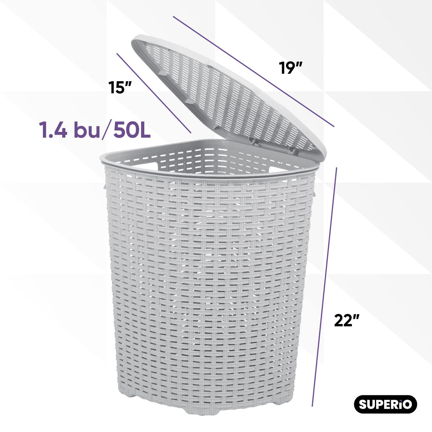 Plastic Corner Laundry Hamper With Lid, Curved Designed Laundry Basket, Triangle White Smoke Cloths Hamper Organizer With Cut-Ou