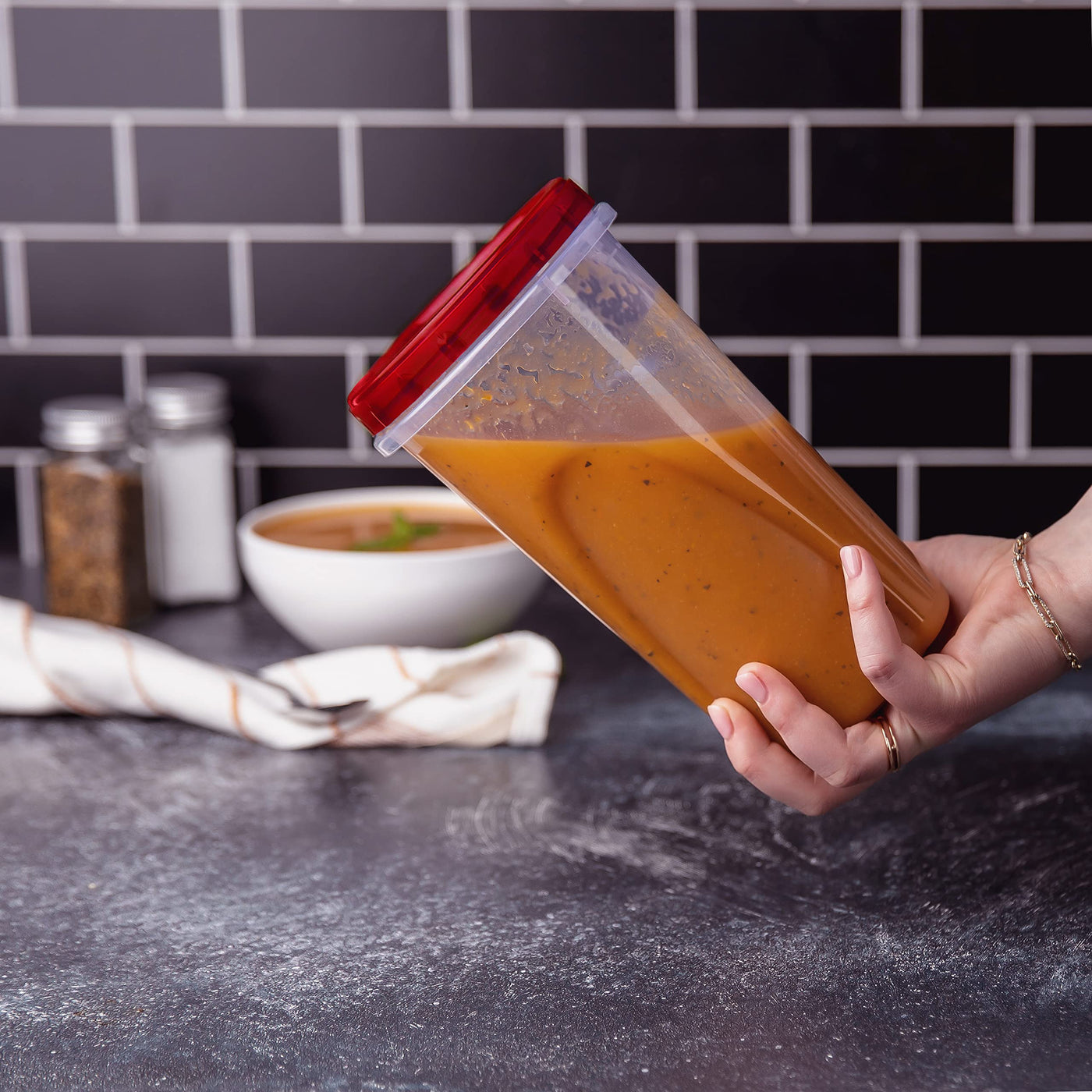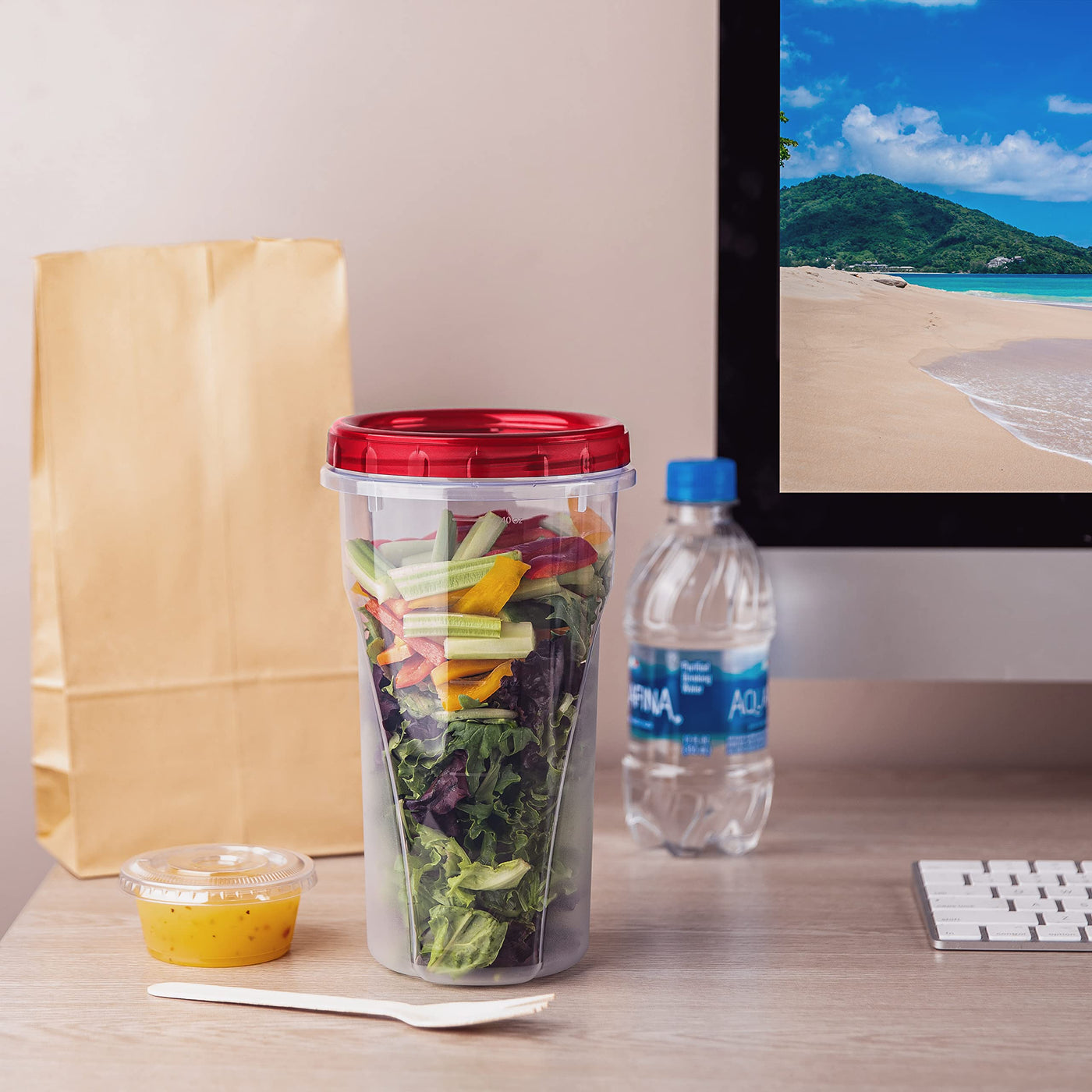 Plasticpro 48 Ounce Twist Top Deli Containers Clear Bottom With Red Top Twist On Lids Reusable, Stackable, Food Storage Freezer