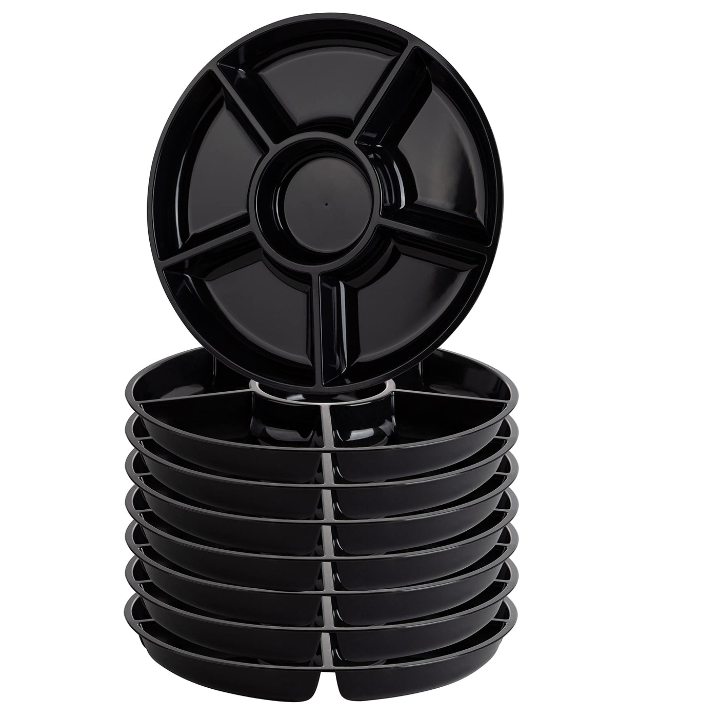 Plasticpro 6 Sectional Round Plastic Serving Tray/Platter (8, Black)